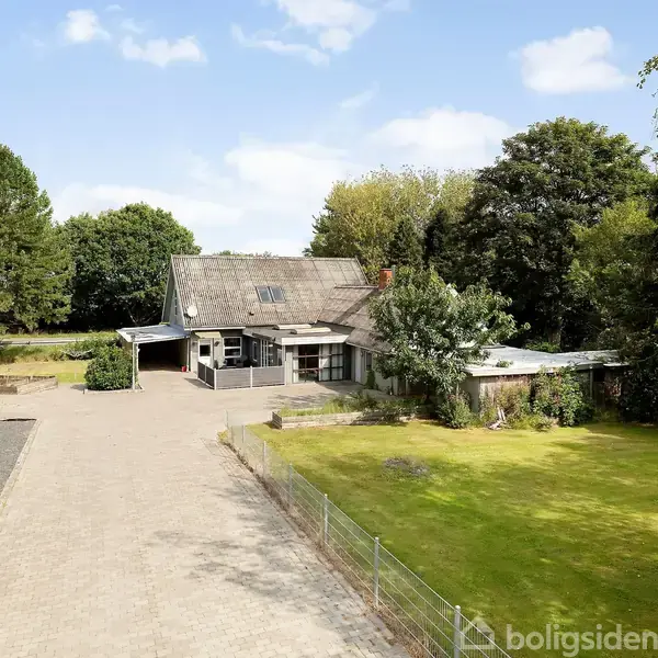 Åbent hus med tilmeldingskrav 1/2 - klik på billede - Villaen er beliggende på en dejlig stor grund på 2.107 kvm. Her er der rig muligheder for at udnytte grunden. Selve huset rummer 174 kvm. fordelt i to plan, herudover er der en udestue, værksted, redskabsrum, to carporte og et drivhus. Ejendommen opvarmes via to varmepumper. Indvendig byder villaen på en entr, køkken-alrum med gulvvarme, udestue med adgang til multirum, stort badeværelse med gulvvarme, to gode værelser. 1 sal er indrettet med 1 værelse og en stor stue/multirum, som sagtens kan deles op til værelser, hvis det ønskes. Der skal regnes med renovering af ejendommen inden indflytning.