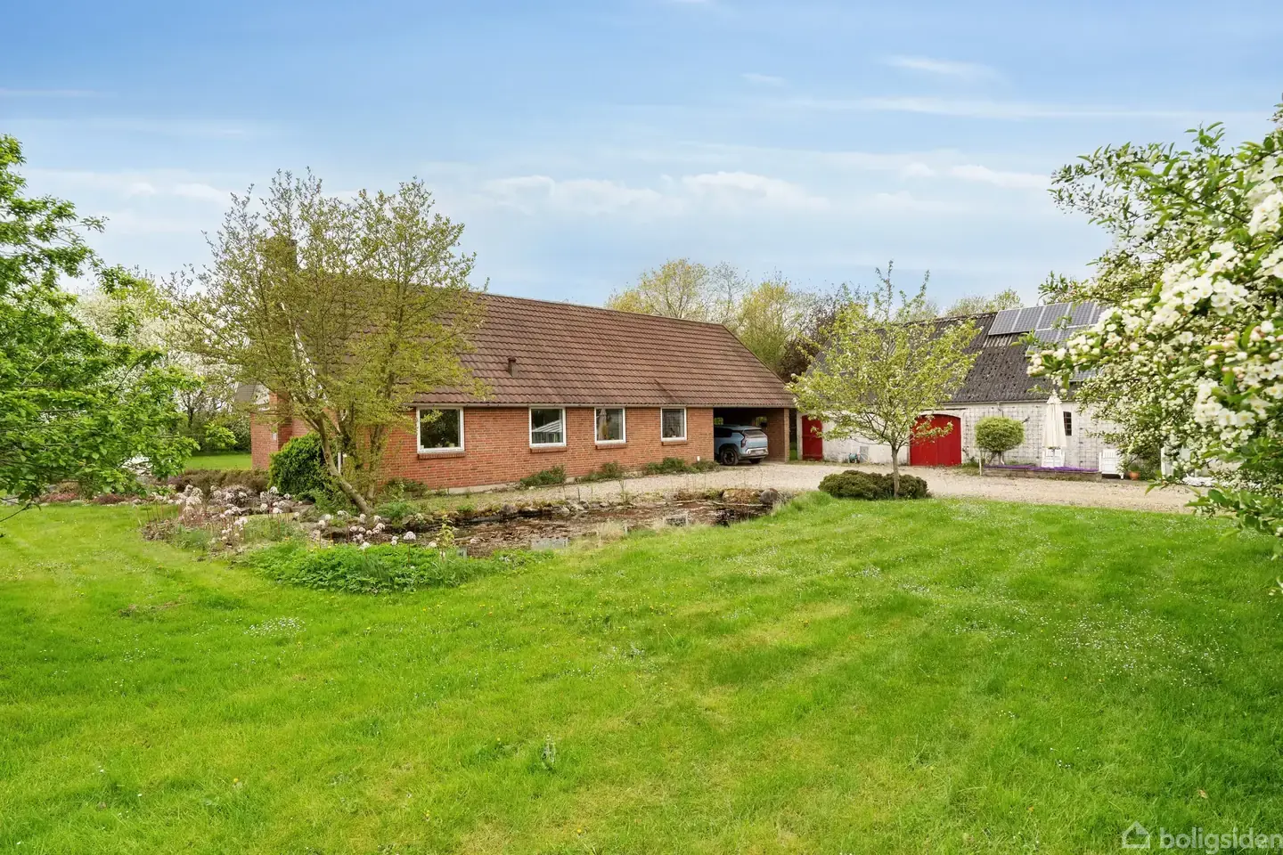 Velholdt familievilla med ro, lys og grønne omgivelserPå Bødkersmindevej 13 finder du en velholdt og praktisk indrettet bolig med plads til hele familien, både inde og ude. Villaen er i ét plan og byder på 121 veldisponerede kvadratmeter med en indretning, der gør hverdagen let at få til at fungere. Fra carporten er der direkte adgang til bryggerset, hvilket gør det nemt at komme hjem med børn, indkøb eller våde gummistøvler. Herfra fører gangen videre til badeværelse og et af de tre gode værel