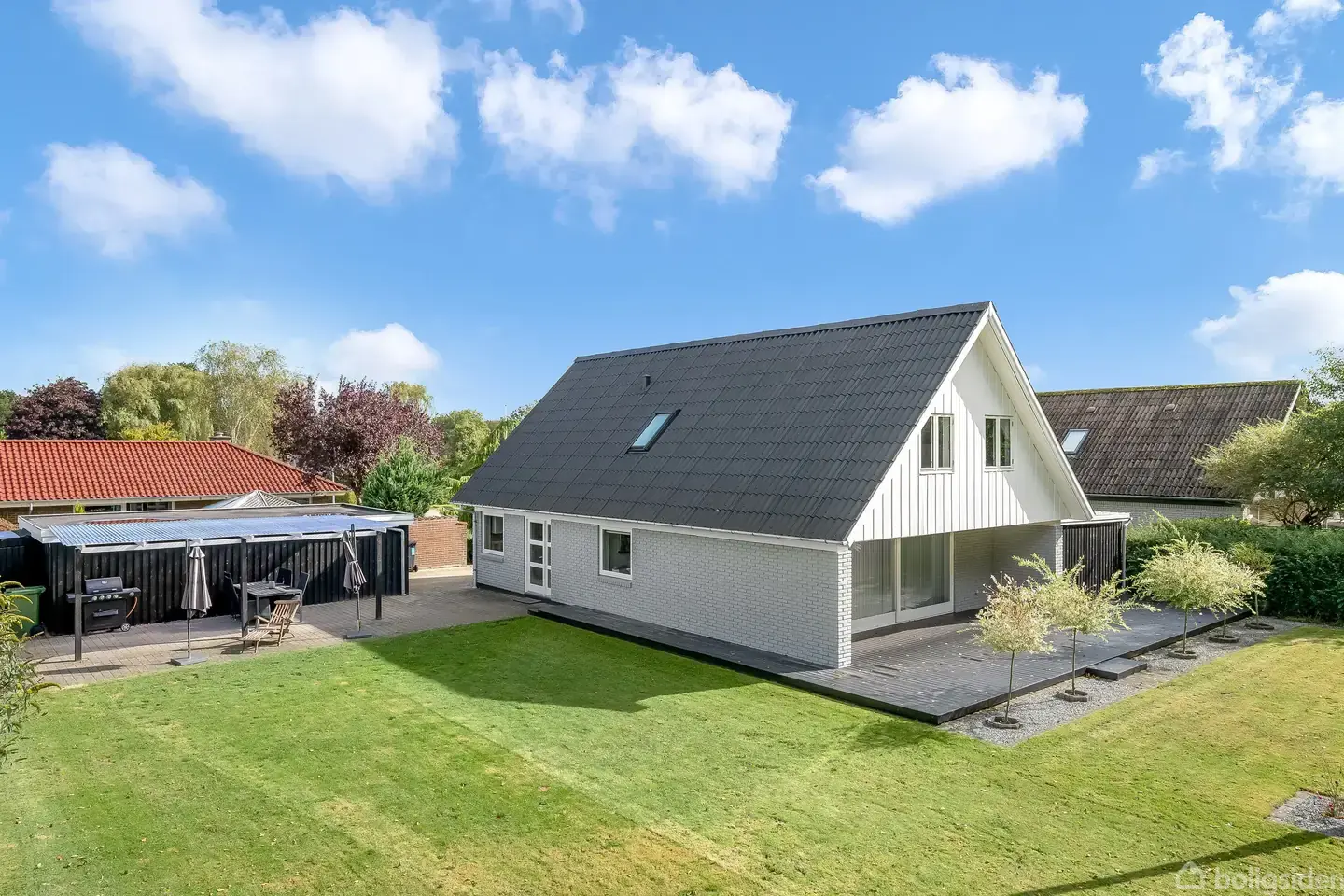 Nu har vi fornøjelsen af at udbyde denne skønne og rummelig villa, perfekt til børnefamilien. Boligen er beliggende roligt og trygt for enden af et lukket vænge i det attraktive Bøgely-kvarter. Her får du adgang til et veludbygget stisystem, der trygt fører børnene til både skole, indkøbsmuligheder og fritidsaktiviteter. Samtidig er der nem adgang til Banegården, hvorfra du hurtigt og bekvemt kan komme mod syd, øst og vest.Villaen er velindrettet og byder på mange gode løsninger. Du træder ind i