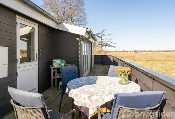 Dette charmerende sommerhus er beliggende i et naturskønt område, der forener både skov og strand. Med sin placering i anden række får man en skøn udsigt over vandet fra den dejlige terrasse, der indbyder til lange sommeraftener og rolige morgenstunder. Indenfor åbner sommerhuset op til et køkken, der flyder sammen med spisepladsen og stuen – et sandt hjerterum, hvor familie og venner kan samles omkring måltider eller hyggelige aftener. Rummet er designet med store, lyse vinduespartier, der ikke