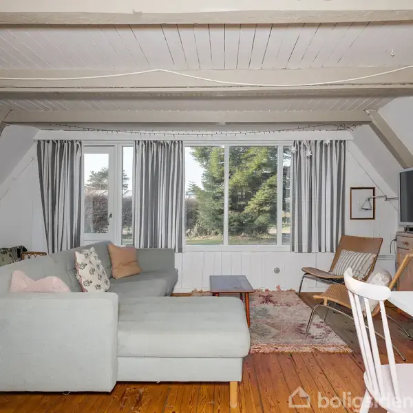 Blot ca. 400 meter fra Marielysts stemningsfulde og livlige torv finder du dette charmerende A-hus, der emmer af feriestemning og hyggelig atmosfære.Dette charmerende tiny house på i alt 55 m² byder på en helt særlig stemning og er indrettet med 37 m² i stueplan samt et hyggeligt loftrum på 18 m². Det ligger højt på grunden. I stueplan træder du ind i et indbydende køkken/alrum, hvor boligen naturligt er opdelt i et ensidet køkken, spiseplads, hyggekrog og alkove. Rummet emmer af varme og sjæl