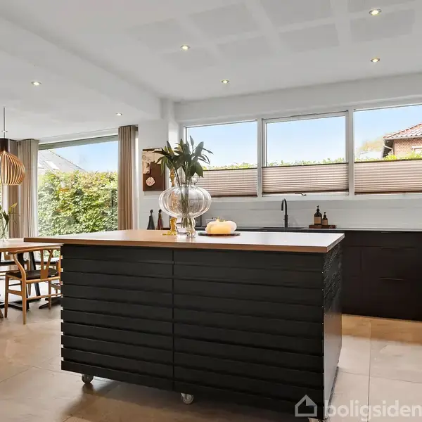 Åbent hus med tilmeldingskrav 4/2 - klik på billede - Velkommen til Bøgevej 6 – her får du en fuldmuret villa fra 1953, som er blevet nænsomt og gennemgribende renoveret fra kælder til kvist. Resultatet er en stilfuld og tidssvarende bolig, hvor der er kælet for detaljerne – bl.a. med fritliggende bjælker, åbne opholdsrum og en planløsning, der fungerer perfekt i hverdagen. Villaens 109 kvadratmeter er udnyttet optimalt og emmer af varme og hjemlighed. Det store, lyse køkken/alrum bliver hurtigt boligens naturlige samlingspunkt med plads til både madlavning, lektielæsning og gode snakke rundt om spisebordet. Herfra er der direkte udgang til en skøn sydvendt terrasse – perfekt til sommerens grillmiddage og afslapning i solen. Stueplan byder desuden på en rummelig stue med dejligt lysindfald, et godt soveværelse og et stilrent badeværelse med separat brus. Kælderen på 76 m² er langt fra en klassisk kælder – her er høj loftshøjde, gode lysforhold og en indretning, der åbner op for mange muligheder. Du får flere disponible rum, som kan bruges til alt fra hjemmekontor og hobbyrum til teenageafdeling eller gæsteværelser. Der er også et ekstra badeværelse, stort vaskerum og tekniske faciliteter, der er diskret integreret. Du er i gåafstand til skole, daginstitutioner, indkøb og offentlig transport, og samtidig tæt på natur, stisystemer og et aktivt lokalsamfund med masser af tilbud til både børn og voksne. Så hvis du drømmer om en bolig med charme, sjæl og moderne komfort, så er denne gennemrenoverede villa et oplagt valg. Her får du en indflytningsklar bolig med god plads, gennemtænkte løsninger og masser af muligheder.