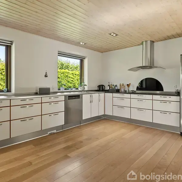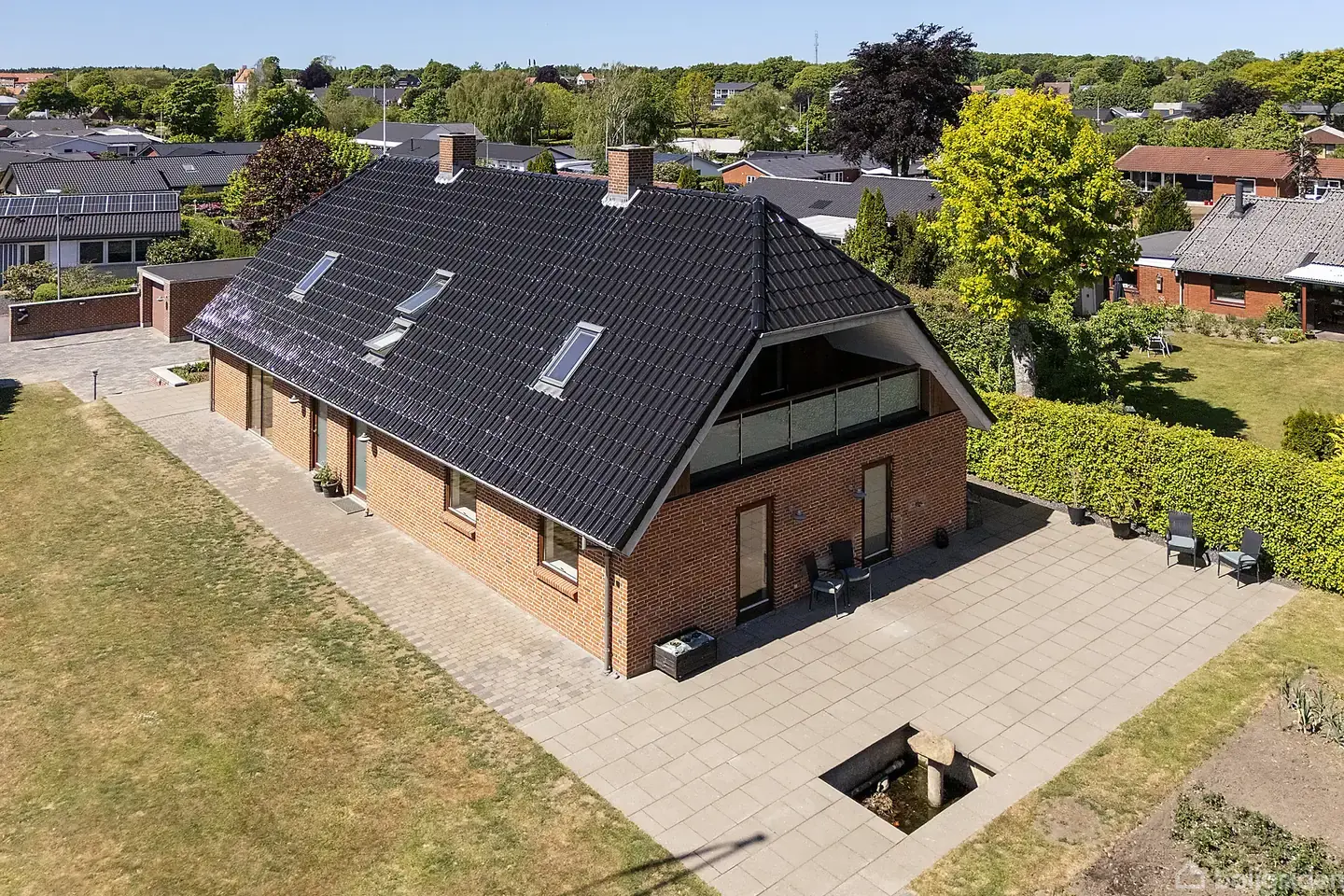 På en stille, lukket villavej, hvor børn leger trygt, og hverdagen føles let, ligger denne smukke og gennemførte familievilla. Her bor du i et fredeligt, børnevenligt kvarter tæt på både skole, bymidte og natur – og samtidig fri for trafikstøj.Villaen er opført i 2007 i kompromisløs kvalitet og står indflytningsklar fra første dag. Alt er gennemtænkt og udført i solide materialer: fuldmuret konstruktion, glaseret tegltag, mahognivinduer og massive egetræsgulve, der går elegant igen i det meste a