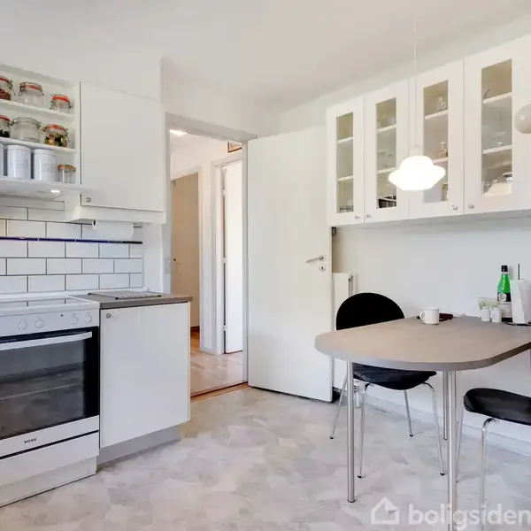 Velkommen til denne villa på 117 m² placeret i udkanten af Haarby. Via de lukkede stisystemer når du hurtigt både skole, indkøb, fritidsaktiviteter - og samtidig bor du ugeneret med god afstand til naboer og udsigt til den skønne natur.Indgangen sker via bryggerset med lyse fliser, god plads til overtøj og vaskemaskine. Køkkenet er lyst og funktionelt med hvide elementer, spots i loftet og plads til et mindre spisebord. Villaen emmer af lys og ro, og smukke gulve går igen i stue og værelser. De