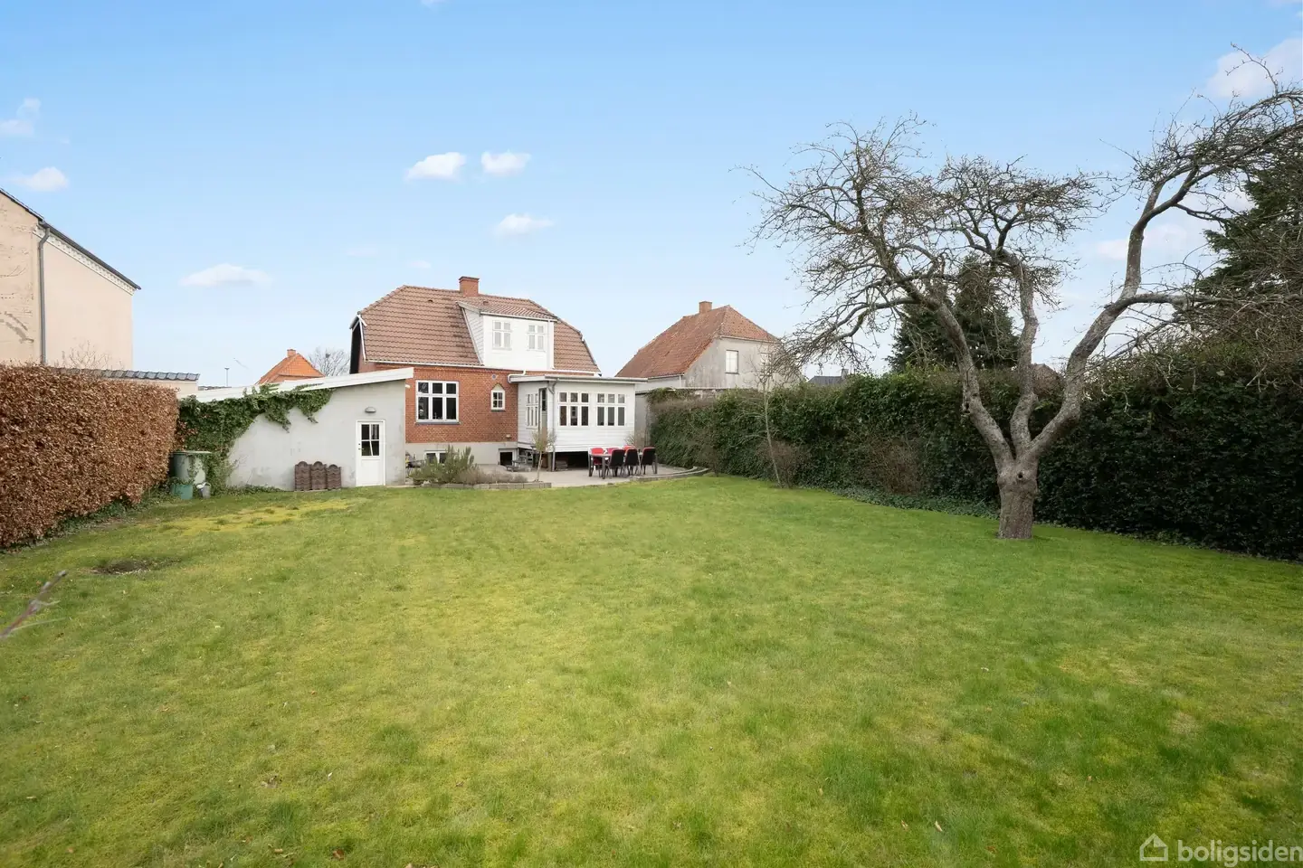 Åbent hus med tilmeldingskrav 8/3 - klik på billede - Velkommen til Bøjdenvej 29, 5800 Nyborg Drømmer du om en rummelig bolig med moderne komfort? Så er denne skønne ejendom på 128 m² lige noget for dig! Med en gennemtænkt planløsning og flere nyrenoverede rum byder boligen på en perfekt kombination af funktionalitet og hygge.Den rummelige stueetage byder på et stort, åbent køkkenalrum, hvor der er rigeligt med plads til både madlavning og samvær. Det moderne køkken er indrettet med god bord- og skabsplads samt spisebordsplads, hvilket skaber en hyggelig atmosfære for familien. I forlængelse af køkkenet finder du en hyggelig stue, hvor der er plads til afslapning og hyggelige stunder. Fra stuen er der adgang til en renoveret udestue, der tilføjer ekstra kvadratmeter og giver mulighed for at nyde haven året rundt. Ved hovedindgangen finder du et praktisk gæstetoilet, så du nemt kan byde gæster velkommen. På første salen bliver du mødt af et stort rummeligt repos, der nemt kan indrettes som kontor eller lign. Det åbner samtidig op for resten af første salens rum, her venter et stort og moderne badeværelse samt to rummelige værelser. Værelserne har gode indretningsmuligheder og masser af dagslys, hvilket gør dem ideelle som soveværelser, kontor eller børneværelser. Kælderen byder på et nyrenoveret værelse med affugtningsplader og anlæg, der sikrer et sundt indeklima. Derudover er der god opbevaringsplads og direkte udgang til en flisebelagt terrasse. Kælderen tilbyder masser af muligheder. Haven er dejligt overskuelig og perfekt til både afslapning og socialt samvær. Den sydvendte, flisebelagte terrasse sikrer, at du kan nyde solen hele dagen. Her er plads til både grillhygge, blomsterkrukker og afslappende stunder i det fri. Ejendommen har en stor integreret garage, hvor der både er plads til bil og trailer. Garagen er også ideel til hobbyaktiviteter eller som festlokale, når der skal holdes gode sammenkomster. Denne bolig på Bøjdenvej 29 er perfekt til dig, der ønsker en velholdt, rummelig og funktionel bolig med moderne faciliteter. Kontakt os i dag for en fremvisning!