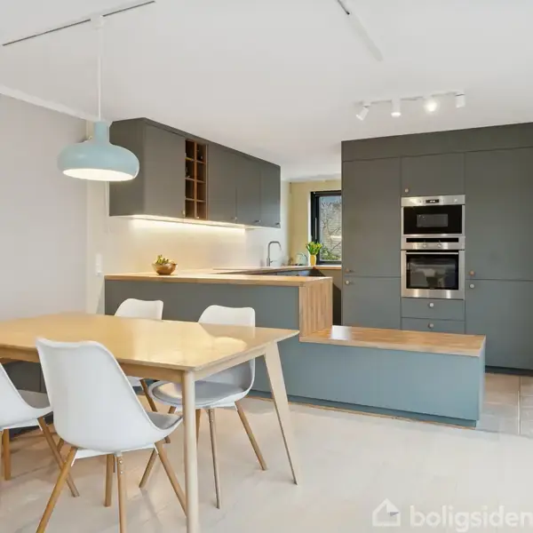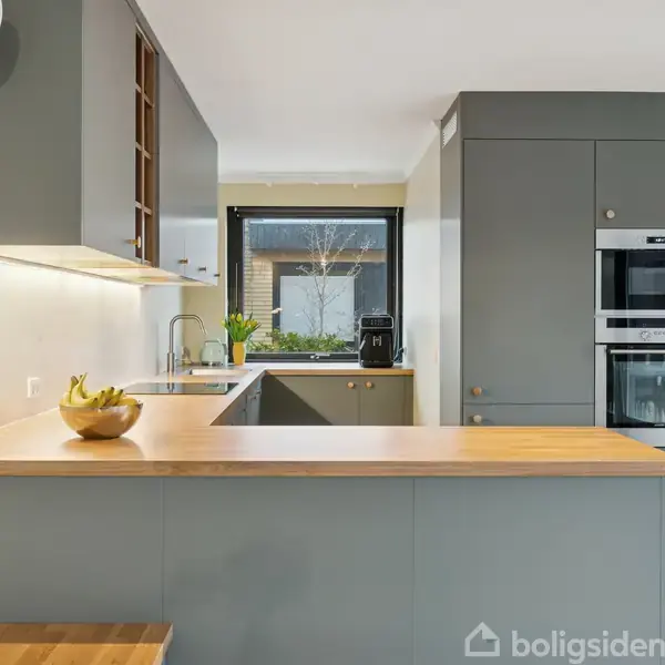 Veludført rækkehus med atriumgård  I et roligt kvarter i det nordlige Hørsholm ligger denne indbydende bolig. Der er tale om et arkitektonisk veludført rækkehus i ét plan, der omkranser en ugeneret atriumgård, og gårdhaven kan tilgås fra samtlige rum med undtagelse af badeværelserne. Rækkehuset er flot moderniseret og rummer fire værelser, to badeværelser og et stort køkken-alrum. Ligeledes medfølger en garage såvel som en attraktiv beliggenhed tæt på naturen og alle byens bekvemmeligheder.  Køk