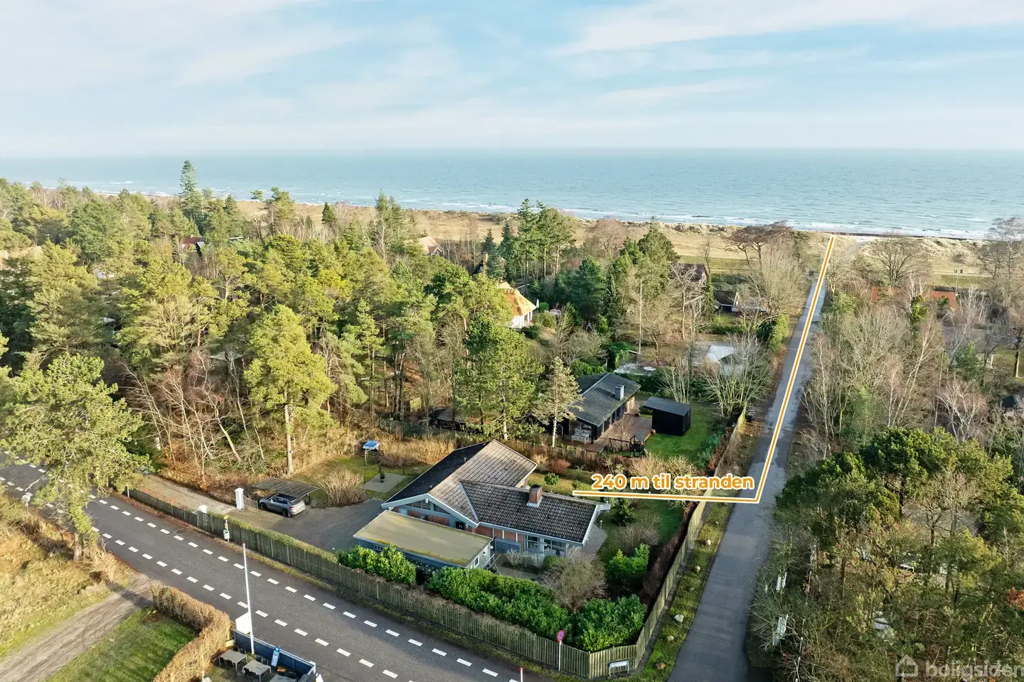 I 4. Række fra det smukke dige finder man dette velbyggede fristed, som er velegnet til helårsbeboelse.Ejendommen fremstår som et velholdt, fritliggende étplanshus beliggende i skønne omgivelser tæt på én af Danmarks bedste badestrande - ca. 240 meter - hvilket gør beliggenheden særligt attraktiv for naturelskere og dem, der ønsker nem adgang til dukkert. Derudover findes det hyggelige Kjørups Kro, som byder på restaurant, ishus og god stemning om sommeren. Huset er opført i klassisk stil med r