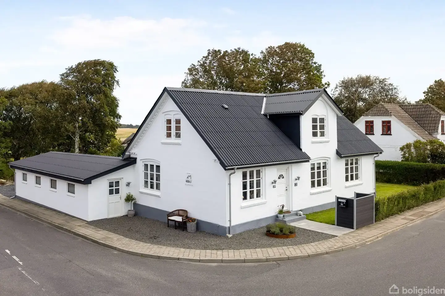 Flot renoveret villa med hvidpudset facade og sort tag, samt mange flotte detaljer og fine farvevalg indvendigt.Denne villa har fået en gennemgribende renovering løbende over de seneste år med bl.a. nyt tag og spær i 2021, og senest nyt badeværelse og nye gulve i 2025.Fra man træder ind af døren fornemmer man med det samme den gennemgående stil og gode loftshøjde.Indretning i stueplan med entré, badeværelse med brusenishe, dejligt stort køkken med spiseplads. Herfra er der adgang til hyggelig st