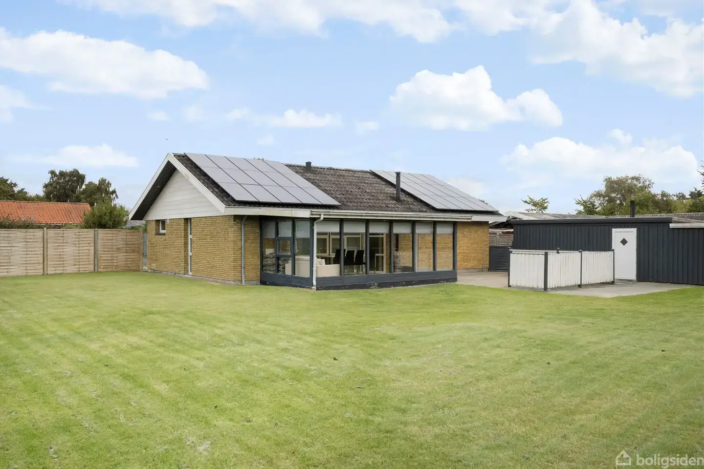 En velholdt etplansvilla i en overskuelig størrelse hører til de boliger, der både kan henvende sig til parret, den lille børnefamilie og til seniorerne. Det er netop sådan en villa, I møder på Bokærsvej 1 i Skamby, hvor løbende opdateringer og en nem have også hører til fordelene. Villaen er endda opgraderet med effektive solceller på 6 kW. Udgangspunktet er en klassisk villa fra 1976, som præsenterer sig pænt med gule murstensfacader og hvidt træværk. Døre og vinduer er skiftet, og indenfor er alle rum ligeledes opfrisket med opdaterede gulve eller inventar, som giver boligen en lys og pæn fremtoning. I alt rummer boligen 107 m2 (jf. BBR), men en sydvendt udestue bidrager med lidt ekstra kvadratmeter i skuldersæsonerne. Indretningen er pragmatisk og får det bedste ud af pladsen. I den ene ende finder I boligens tre værelser i varierende størrelser. De ligger samlet ved entréen, som samtidig agerer bindeled til de fleste af boligens rum. Det gælder blandt andet badeværelset, der er udstyret med muret bruseniche. Køkkenet er desuden lyst og kan indrettes med en lille spiseplads, og bemærk, at inventaret er identisk i køkkenet og bryggerset. Slutteligt rummer villaen en skøn opholdsstue med brændeovn, sydvendte vinduer og direkte forbindelse til udestuen. Baghaven skærmes af en kombination af hegn og hæk, så I kan nyde en privat fornemmelse i det fri. Terrassen gemmer sig endda godt i krogen ved huset og udestuen, som skærmes yderligere af det store udhus, så her er læ de fleste dage. Endvidere er haven meget nem at passe. I sidste ende vil det rolige nærområde være tungen på vægtskålen. Skamby ligger 4,5 kilometer nord for Søndersø, og i de fleste praktiske henseender vil dét være stedet at søge hen. Jeres eget lille byområde har dog gode pasningsmuligheder, mens multihuset og de tilhørende idrætsfaciliteter er byens populære samlingspunkter. Det tager desuden blot 20 minutter at køre til centrum af Odense, men selvom det er rart med bekvem afstand til kulturlivet i den fynske hovedstad, sørger de fredelige omgivelser og nærområdets naturoplevelser også for at løfte landsbyens samlede appel. Kontakt os for at høre meget mere ved en fremvisning. Klik her - følg EDC Søndersø på Facebook og få indblik i det nordfynske boligmarked, konkurrencer og meget mere!