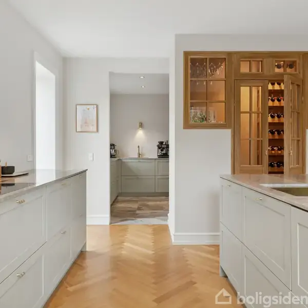 Klassisk 1930’er-villa med orangeri og indbyggede solceller i taget - i hjertet af Rungsted KystTotalrenoveret herskabsvilla fra 1939, der forener sildebensparket, stuk og sprossevinduer med gulvvarme overalt, snedkerkøkken med marmor bordplader, integrerede solceller og batteribank. Årlig energiudgift: ca. 11.000 kr. Orangeriet binder hus og have sammen, mens den 1.111 m² store grund indbyder til pool, spa og terrassemiljøer. Centralt ligger et dobbelt snedkerkøkken med massiv marmorbordplade,