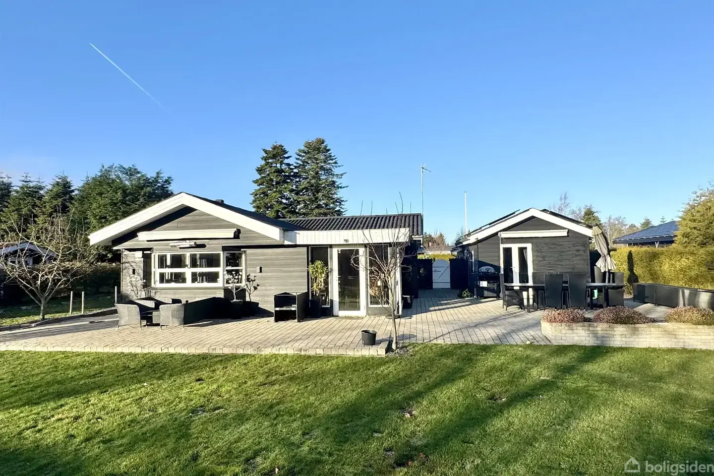 Pænt fritidshus med carport og udhuse, stort anneks, beliggende på 1.028 kvm dejlig grund, i særdeles eftertragtet sommhusområde på Marielyst, 5 min gang fra Marielsyt Torv, med skønt miljø, restauranter / spisesteder, indkøb og specialbutikker mv. Huset er opført i 1965 med efterfølgende om- og tilbygninger næsten overalt i 2025 og indeholder: Entre. Pænt badeværelse, pænt stort soveværelse med god skabsplads. Køkken / alrum i åben forbindelse med opholdsstuen, hvori udestuen er integreret. Opvarmning med varmepumpe. gulvvarme i hele huset + udestue, samt et solcelleanlæg med batteri- ligeledes forberet til ladestander af elbil i indkørsel. Haven er hyggelig og lukket og anlagt med græsplæne til boldspil og leg mv. Ingen udlejningsaftale.