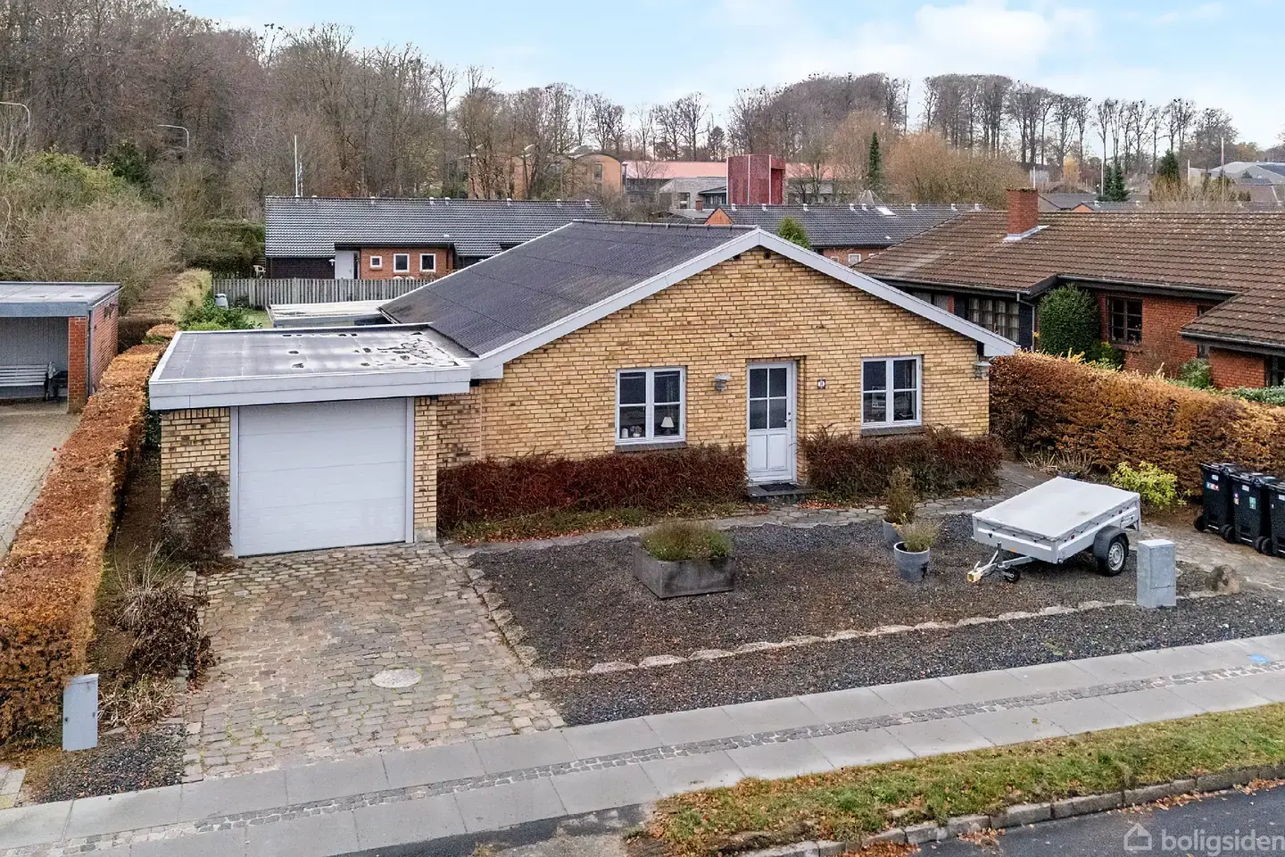Denne gulstensvillaen fra 1963 på Boulevarden 34 ligger lige dér, hvor hverdagen glider lidt lettere. En rolig villavej et par hundrede meter fra Odder centrum betyder, at I har det hele tæt på; daginstitutioner, Rema 1000, stationen og gode stisystemer. Huset har 123 m² fordelt på en planløsning, der stadig fungerer super godt, men som let kan optimeres. To gode værelser ligger afskærmet fra opholdszonen, og badeværelset står i lyse materialer med separat bruseniche. Køkkenet ligger for sig se