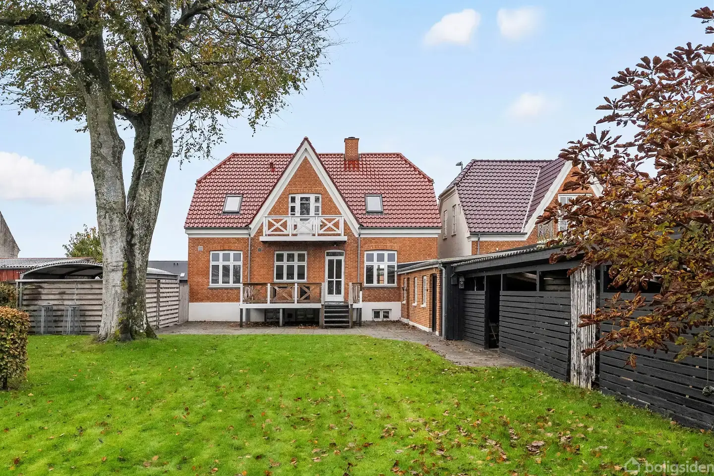 Åbent hus med tilmeldingskrav 4/2 - klik på billede - Flot klassisk murmestervilla i Skjern Unik mulighed for at erhverve sig en virkelig flot klassisk villa centralt i Skjern. Her er charme, flotte detaljer, masser af plads og ikke mindst dejlig lukket have med hyggeligt anneks. Indretning: Villaen er i tre plan, og allerede i entréen fornemmer du sjælen den moderniserede villa. Her er højt til loftet, flotte trægulve og ikke mindst håndværksmæssige detaljer. Entréen byder på god opbevaringsplads, opgang til 1. salen, adgang til værelse samt badeværelse. Her er lyst badmiljø, muret bruseniche og god plads til familiens gøremål. De flotte gamle døre åbnes til den store stue med masser af lys fra de flotte vinduespartier. Bemærk de flotte træudskæringer omkring dørene og de fine stukrosetter. Fra stuen er der to adgange til det store køkkenalrum, der vender mod haven. Her er også bevaret flere oprindelige detaljer bl.a. med de indbyggende vitrineskabe. Køkkenet er holdt i lys moderne stil, og her er god arbejdsplads. Herfra er der direkte udgang til træterrasse og haven. Fra køkkenet er der nedgang til god tør kælder, hvor der er fin plads til opbevaring. Herfra er der også direkte udgang til haven. 1. sal rummer anvendeligt repos med stort vinduesparti mod haven og udgang til altan. Her er fire gode værelser, hvor også flere af de oprindelige bygningsdetaljer er bevarede. Her er endnu et dejligt badeværelse med muret bruseniche og badekar. Til boligen hører carport og dejlig lukket have, hvor der er god plads til leg, hygge og aktiviteter. Her er mindre meget fint anneks, som er oplagt som samlingspunkt for udelivets gøremål. Vi glæder os til at fremvise denne flotte villa med den centrale beliggenhed i Skjern. Book din fremvisning på tlf. 9735 0044.