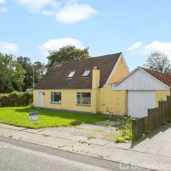 BUD ØNSKES Billigt hus med en stor garage er beliggende på en stor grund i Ajstrup med kort afstand til Sulsted, hvor der er skole, daginstitutioner og skole mm. Huset rummer et boligareal på 127 m² fordelt i 2 plan. Indretning: entre, spiseplads, stue med brændeovn, køkken, baggang, badeværelse med bruseniche, disponibelt rum (har fungeret som værelse). 1 sal: repos, soveværelse og to værelser. Stor garage/værkstedsbygning på 65 m². Dertil er huset beliggende på en 1384 m² stor sydvendt grund. Huset kræver i sin helhed renovering.