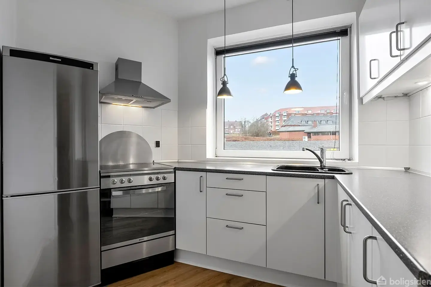 Drømmer du om din første ejerbolig med central beliggenhed og lave kompromiser? Denne indflytningsklare lejlighed i Randers C er et oplagt valg for førstegangskøberen, der ønsker en nem hverdag tæt på byens liv - uden besvær med parkering. Lejligheden byder på en rummelig entré med god plads til opbevaring. Herfra er der adgang til en stor stue med plads til både sofa og spisebord samt udgang til en overdækket altan, der giver ekstra kvadratmeter og mulighed for at nyde udelivet i hverdagen. Køkkenet er hyggeligt og funktionelt indrettet, soveværelset er stort med plads til både seng og garderobe. I hele lejligheden er der nyere gulve, som giver et pænt og ensartet udtryk - her kan du flytte direkte ind uden at skulle i gang med større projekter. Badeværelset er funktionelt og passer fint til lejlighedens størrelse. Her er desuden plads til vaskemaskine. Til lejligheden hører eget kælderrum, og parkering er særdeles nem med gratis parkering lige uden for døren samt parkeringskort til baggården - en stor fordel, især midt i byen. Med blot ca. 5 minutters gang til gågaden og indkøb et stenkast fra hoveddøren får du en central beliggenhed, hvor hverdagen er let og overskuelig. En ideel førstegangskøberlejlighed med altan, parkering og attraktiv beliggenhed i Randers C.