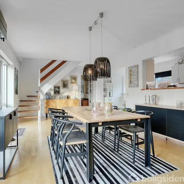 Beliggende tæt på skov og i umiddelbar nærhed til S-tog, skoler, sport og Farum Bytorv.Ved ankomsten træder du ind i en god entré som leder dig videre ind i boligens øvrige rum. Fra entréen er der yderligere adgang til et af boligens 3 badeværelser.Det centrale opholdsrum består af et rummeligt køkken-alrum i åben forbindelse med stuen. Her flyder madlavning, samvær og afslapning naturligt sammen, og de store vinduespartier skaber et smukt lysindfald dagen igennem. Stuen byder på mange indretnin
