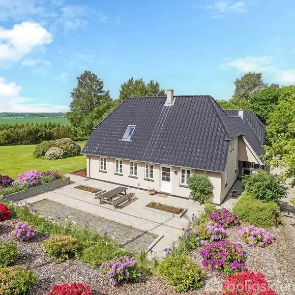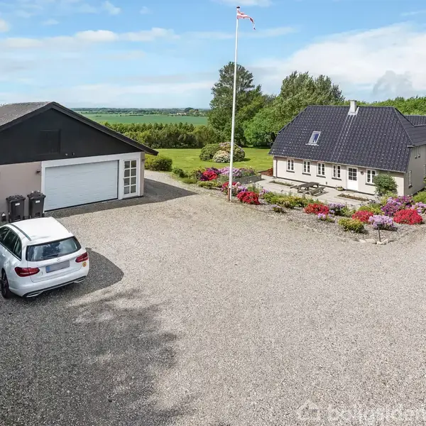 Midt i det åbne landskab, omgivet af marker og med et smukt, frit view, ligger denne imponerende og særdeles velholdte ejendom. Her er højt til himlen, ro omkring jer og en helt særlig fornemmelse af at bo ugeneret – for enden af vejen og med naturen som nærmeste nabo. Boligen rummer hele 357 kvm. og giver enestående muligheder for den pladskrævende familie, flere generationer eller kombineret bolig og erhverv. De mange kvadratmeter giver fleksible indretningsmuligheder, masser af luft og plad