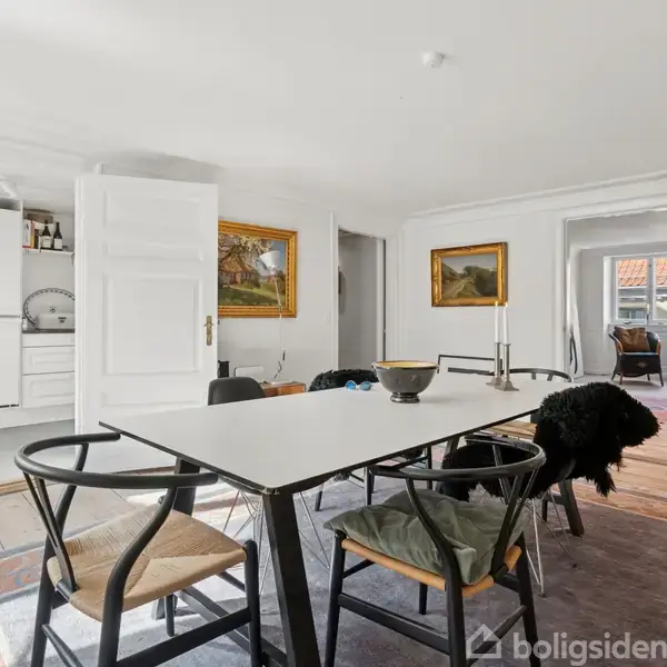 Det er i smørhullet mellem Rundetårn, Rådhuspladsen og Christiansborg, at I finder denne spændende lejlighed, som har en rigtig god rumfordeling og et behageligt dagslys. I bosætter jer nemlig på tredje sal i en elegant ejendom fra 1798, og overalt i hjemmet oplever I fine detaljer og en skøn rummelighed. Alt, hvad byhjertet begærer, ligger for jeres fødder med en beliggenhed som denne. Lækre spisesteder, hyggelige caféer og et utal af kulturelle oplevelser er inden for nær rækkevidde sammen med et hav af ikoniske vartegn. De praktiske fornødenheder såsom skole, dagtilbud og indkøbsmuligheder er ligeledes lige for hånden. Hjemmet indledes af en entré med indbygget skab, og for enden af gangen finder I to stuer en suite, som har smukke trægulve, masser af plads og et skønt lysindfald. Fra den ene stue er der adgang til det elegante køkken, hvor I igen møder god plads og en imødekommende atmosfære. Hele tre værelser giver jer mange indretningsmuligheder, og de har alle sammen ganske fine størrelser og flotte trægulve. Endelig skal I se det flotte badeværelse, der har separat bruseniche, nydelige fliser, væghængt toilet og et vindue, der sikrer lys og luft. Lyder det som et hjem for jer? Så kontakt os allerede i dag for at høre mere.