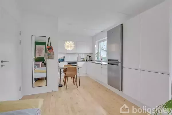 Det perfekte førstegang- eller forældrekøb! Lys og lækker ejerlejlighed i stueplan med direkte udgang til terrasse i flot og moderne boligbyggeri fra år 2006 udbydes nu af home!.Indvendigt fremstår boligen velholdt og stilfuld med bl.a. parketgulve samt lyse vægge og lofter. Lejligheden består af præsentabel entré med god plads til sko og overtøj. Fra entréen er der adgang til boligens 2 rum, herunder badeværelset, køkken-/alrummet med sofaafdeling. Badeværelset fremstår flot, og her er bl.a. to
