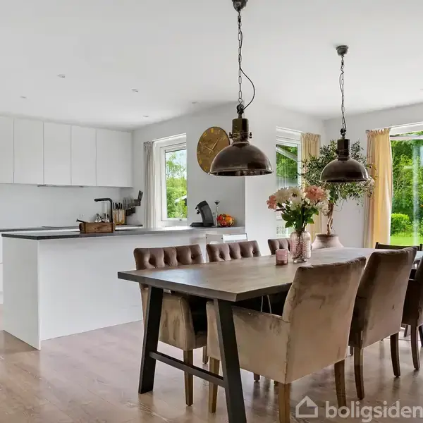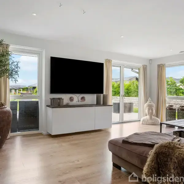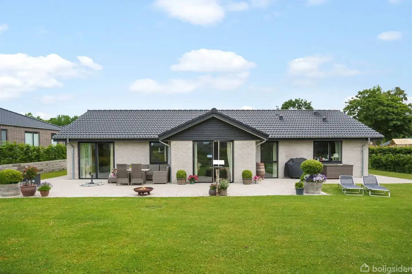 Åbent hus med tilmeldingskrav 2/2 - klik på billede - På en yderst velbeliggende koteletgrund ud til grønne arealer og med sol hele dagen finder I dette helt perfekte og ukomplicerede typehus bygget i 2021 klar til indflytning. 145 kvadratmeter i et plan og nærmest uden et fodtrin, samt en optimal planløsning med master-bedroom, køkken-alrum, skøn stuer samt bryggers og værelsesafdeling til børnene, hjemmekontoret eller gæsterne. Dertil stor dobbelt carport med stort skur. Der er lagt fliser hele vejen rundt om huset hvorfor solen kan nydes fra morgen til aften. Boligen indeholder: Entré med indgang til 2 gode og rummelige soveværelser, flot flisebadeværelse med bruseniche samt praktisk bryggers. Indgang til et skønt køkken alrum med opdelingsvæg til stuen. Fra både stue og køkken-alrum er der udgang til en fantastisk sydvendt fliseterrasse og den meget overkommelige have med plads til børneleg, køkkenhave mv. Her kan nydes kigget ud over grundejerforeningens grønne arealer. I den anden ende af huset er en fantastisk master-bedroom afdeling med eget badeværelse og walk-in closet som nemt kan åbnes op til husets 4 soveværelse eller et større forældresoveværelse. Der er også grundstørrelse nok til at bygge en tilbygning på huset såfremt I mangler plads. Huset er opvarmet med luft til vand kombineret med genvinding system og sikrer derfor yderst lave drift udgifter. Til boligen er der netop færdigbygget en stor dobbelt carport med stort isoleret skur for enden til opmagasinering. Denne bolig har alt hvad man som par eller moderne børnefamilie behøver, og lidt til. Leder I efter en moderne, nybygget og overkommelig bolig på en skøn beliggenhed i området skal denne bolig ses! Når du køber en bolig gennem EDC, har du mulighed for at få en gratis flytteforsikring. Ønsker du denne, skal du sende en mail med "Ja tak" til [email protected]