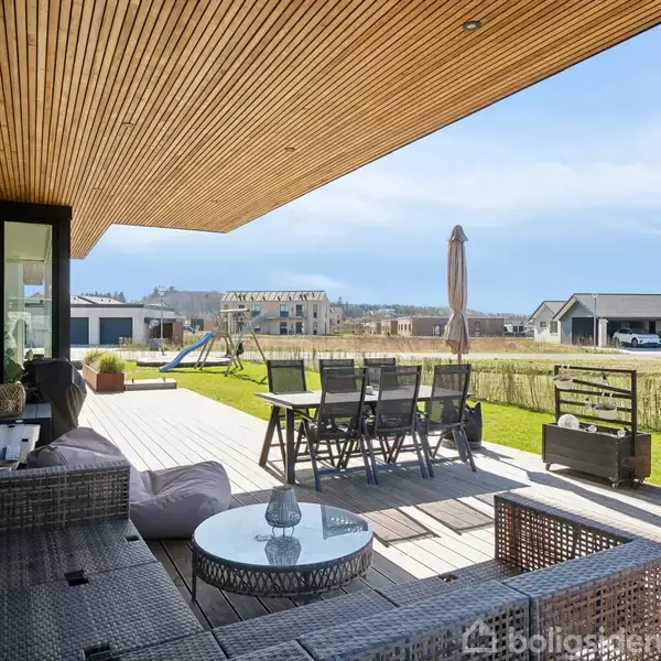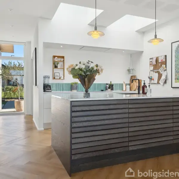 Drømmer du om en bolig, hvor design, funktionalitet og æstetik går op i en højere enhed? Så er denne unikke villa, tegnet af arkitektfirma M2 Plus, noget helt særligt. Beliggende i attraktivt og rolige kvarter, får du her et hjem, hvor hver detalje er gennemtænkt og kvaliteten er kompromisløs. Villaen byder på 217 m² boligareal, fordelt på en gennemtænkt planløsning med åbne, lyse opholdsrum og private zoner, der skaber en ideel ramme for både familieliv og gæstfrihed. Store panoramavinduer og elegante materialevalg skaber et hjem med karakter, varme og masser af naturligt lys. Højdepunkter: Arkitekttegnet af M2 Plus med fokus på tidløs elegance og funktionalitetÅben og indbydende stue/køkken-alrum Eksklusivt køkken med kvalitetsmaterialer og integrerede løsninger samt viktualierumForældreafdeling med eget badeværelse og walk-in closetBørne-/gæsteafdeling med god opdeling og adgang til eget badeværelseIntegreret carport med adgang til entre og bryggersEnergivenlige løsninger og lavt varmeforbrug Arnbjerg er et af Viborgs mest eftertragtede områder – med naturen som nabo og kun få minutter til skole, daginstitutioner, indkøb og Viborgs pulserende byliv. Her får du en moderne bolig i rolige omgivelser, uden at gå på kompromis med hverken komfort eller beliggenhed.