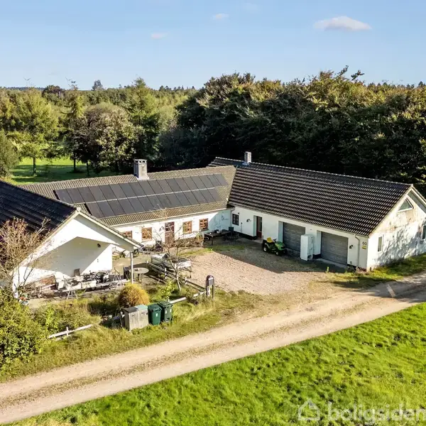 Åbent hus med tilmeldingskrav 2/2 - klik på billede - Velkommen til Brunbjergvej 60 – en skovejendom midt i naturens ro og skønhed ved Hjortlund, Grindsted. Her får du hele 15 hektar jord med både skov, eng og åbne marker, hvor stilheden kun afbrydes af vindens susen i trækronerne og råvildtets stille bevægelser i skovbrynet. Området er et paradis for naturelskere, jægere og alle, der drømmer om at leve tæt på landskabet – og samtidig kun have få minutters kørsel til indkøb og hverdagsliv i Filskov. Ejendommen, der oprindeligt blev opført i 1877, står med en solid og karakterfuld bygningskonstruktion, hvor den historiske sjæl stadig mærkes i murværket. Den udgør en sjælden mulighed for at skabe et hjem med både historie og fremtid. De vigtigste ting er på plads: taget er udskiftet, der er installeret jordvarme, solceller og gulvvarme, og den rummelige dobbeltgarage opvarmes med luft/luft varmepumpe. Indvendigt er tiden kommet til fornyelse – og det er netop her, magien ligger. For her får du ikke et færdigdesignet hjem, men en ærlig ejendom med et stærkt udgangspunkt. En bolig, hvor du kan sætte dit eget præg og forme den efter din egen drøm. Måske skal de klassiske bondehusvinduer bevares og understøtte den landlige charme, eller måske skal store vinduespartier åbne hjemmet op og invitere naturen indenfor. Til ejendommen hører også flere udhusbygninger, som ligeledes trænger til en kærlig hånd, men som rummer et væld af muligheder – værksted, gildesal, hestebokse, atelier eller noget helt fjerde. Her er plads til både hobby og håndværk, liv og udfoldelse. Brunbjergvej 60 er ikke en bolig for alle – men for dem, der ser værdien i potentialet, charmen i det uforfinede og friheden i at skabe noget eget. En ejendom med muligheder, en god og sund skal, og et sted der venter på nye ejere med blik for alt det, der kan blive. En ejendom skal opleves.
