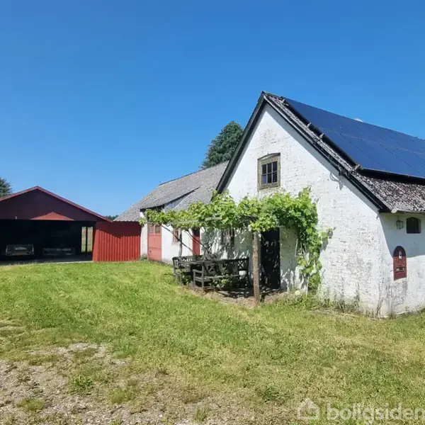 Ejendommen "Semsøgård" har en flot og naturskøn beliggenhed med sydskråning ned mod Sem Sø - her er plantet vinstokke på 0,6 ha med fremstilling af hvidvin for øje. Boligen på 97 kvm er indrettet i den ene ende af bygningen fra 1876 - med udsigt mod syd ud til vinmarken og Sem Sø. Er indrettet med lille entré med toiletrum, bryggers med grovkøkken og vaskeafdeling, badeværelse, stue, flot køkkenafdeling med åben forbindelse til /alrum/spisestue samt et viktualierum. Ovenpå i enden mod øst er indrettet soveværelse - resten af loftet er endnu ikke udnyttet eller isoleret - her er der god mulighed for at lave flot udsigt nedover vinmarken mod Sem Sø mod syd. Stor plæne med læ og plads til aktiviteter rundt om boligen. Boligdelen er rimeligt isoleret, men trænger til at blive forskønnet. Alternativt kan der opføres en ny bolig med fokus på den flotte udsigt til Sem Sø. Opvarmning med luft-luft varmepumpe, brændeovn og el. På taget er monteret 6 kW solcelleanlæg til kompensation på elregningen. I den anden ende af bygningen - modsat boligen, har der været stald - her er mulighed for at udvide boligen. Sammen med længen mod nord fra 1940, er der et samlet areal på 336 kvm - hvor en del er med lade, værksted, lager og delvist indrettet til vinproduktion. Herudover er en nyere carport på 80 kvm, et brændeskur på 35 kvm samt et maskinhus på 70 kvm. Vinstokkene står med god afstand mellem rækkerne - og står godt beskyttet af kraftige læhegn mod vest og øst. Produktionen af vin har ligget stille et par år, men der er mulighed for at genoptage den samt eventuelt at fordoble antallet af vinstokke nord for bygningerne. Der opfordres til at komme og se den skønne beliggenhed.