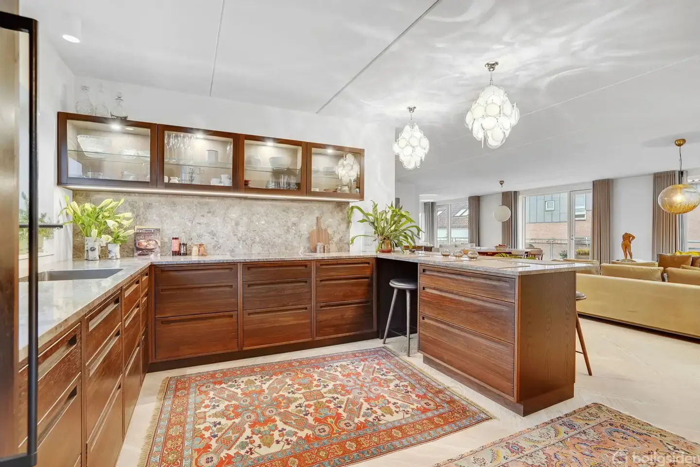 Eksklusiv liebhaverlejlighed midt i HerningVelkommen til denne unikke og eksklusive liebhaverlejlighed, centralt beliggende i hjertet af Herning. Allerede ved ankomsten, mødes du af en elegant hall med eksklusive klinker og adgang via privat elevator direkte til boligen – en sjælden luksus, der understreger lejlighedens høje niveau. I samme etage findes et stilfuldt grovkøkken med mulighed for madlavning, så dette ikke giver gener i lejligheden, samt et praktisk depotrum, ideelt til opbevaring af golfudstyr, overtøj mv. Det første man møder, når man træder ud af elevatoren, er den største wow effekt. Alt emmer fra første øjeblik af lækkerhed og smukke materialer. En smuk og stilfuld stue med elegante sildebensgulve fra Dinesen. Den imponerende og elegante gaspejs skinner igennem rummet fra man træder ud af elevatoren. Hver en detalje er gennemtænkt. Hjerterummet i denne lejlighed er et smukt snedkerkøkken fra Culina. Køkkenet byder på eksklusive løsninger, flotte detaljer og en stor køkkenø med hyggelige siddepladser. Det elegante køkken ligger i åben forbindelse med den stilfulde store stue, de store vinduespartier, som giver det smukkeste lysindfald fra alle vinkler. Stuen fuldendes af den betagende, store gaspejs, der tilfører både varme og karakter til rummet. Fra stuen er der udgang til dejlig altan, hvor aftensolen kan nydes. Endvidere finder man et dejligt lyst værelse. Et smagfuldt gæstebadeværelse med håndvaskearrangement med støbt vask, bruseniche, håndklædetørre samt smukke klinker. Masterafdelingen består af et rummeligt soveværelse med udgang til altan, hvor morgensolen kan nydes. Herfra er der direkte adgang til et eksklusivt badeværelse med dobbelt håndvaskearrangement, bruseniche samt tilhørende lækkert walk-in closet med vaskeafdeling. Godt og praktisk depotrum med faste skabe, som sikrer rigelig opbevaringsplads. En eksklusiv detalje i denne lejlighed er vinrummet. Her tager man elevatoren fra lejligheden et step ned. Når elevatordøren åbner træder man direkte ind i det imponerende vinrum med plads til 10 personer rundt om bordet. Selve det store vinrum bag glaspartiet er afkølet. Alt er smukt og godt, og her vil være mulighed for mange hyggelige stunder. Endvidere finder man et pænt, lyst gæstetoilet her. Til lejligheden medfølger 2 parkeringspladser samt fælles cykelskur. En bolig hvor intet er overladt til tilfældighederne – en kombination af klassisk elegance og moderne komfort, der gør denne lejlighed til noget helt særligt. En perle der er sjælden set i Herning midtby.