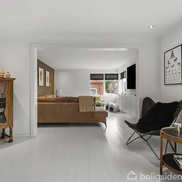 Her får du en bolig, som kombinerer funktionalitet, hygge og masser af muligheder. Med sine gode kvadratmeter fordelt på bolig, kælder og anvendelig ekstra plads, er dette et hjem, der kan tilpasses netop jeres ønsker og drømme. I stueplan bydes du velkommen i en entré med adgang til badeværelse med bruseniche. Videre finder du et lyst og åbent køkken/alrum i forbindelse med stuen – et naturligt samlingspunkt, hvor både hverdagsmåltider og hyggelige stunder kan nydes i fællesskab. Kælderen er