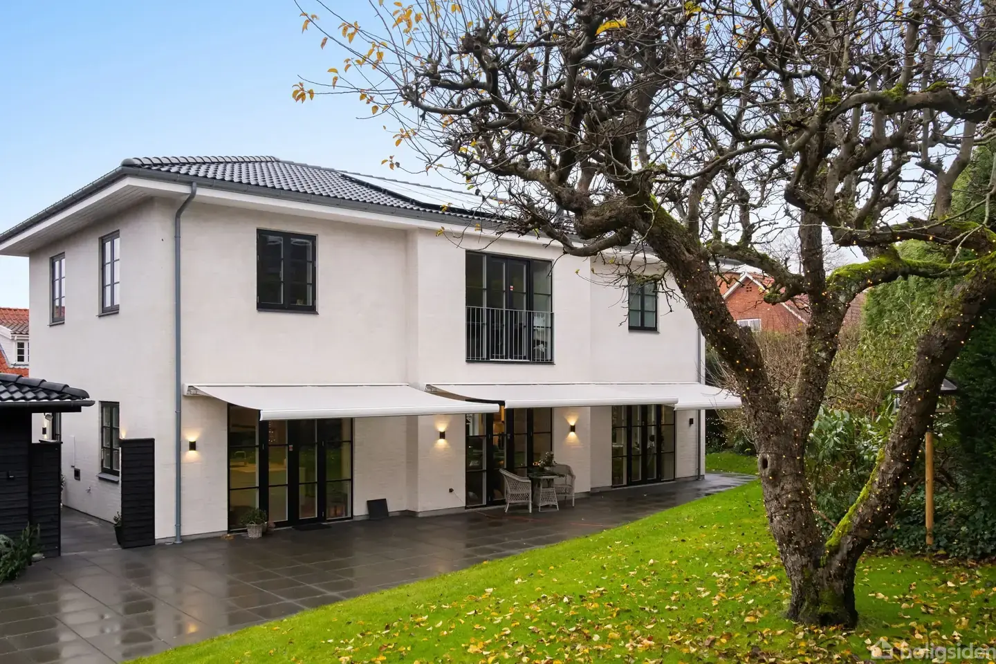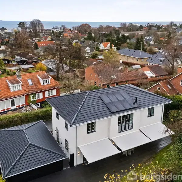 Højt og enestående beliggende på attraktive Bukkeballevej præsenteres denne nyopførte liebhaverejendom fra 2024, smukt placeret på en ca. 1.000 m² velanlagt, ugenert og solrig grund i kort gåafstand til Øresund. Her forenes moderne arkitektur, kompromisløs kvalitet og en beliggenhed i absolut særklasse tæt på Rungsted Private Realskole, havnen, sportsanlæg, golfbaner, indkøb, strand og skov. Ejendommen byder velkommen gennem en elegant fjernbetjent smedejernslåge og rummer 254 m² bolig i to fulde plan suppleret af dobbelt carport samt isoleret og opvarmet udhus. Materialevalget er eksklusivt og gennemtænkt til mindste detalje, og boligen fremstår fuldstændig indflytningsklar. Indenfor mødes man af en imponerende hall med loft til kip og en smuk trappe til førstesalen. Her er et stilfuldt gæstetoilet og adgang til husets hjerte, et fantastisk køkken-alrum fra INVITA med Miele hårde hvidevarer i topmodeller. Køkkenet har direkte adgang til et eksklusivt, tempereret vinrum og flyder naturligt videre til spisestuen, hvor en moderne gaspejs elegant adskiller rummet fra den lyse og solrige opholdsstue. Fra opholdsarealerne er der udgang gennem flere store dobbeltdøre til den markiseoverdækkede terrasse og den smukt anlagte have med gammel beplantning. Et stort, moderne bryggers med egen udgang til carporten fuldender stueplanet. Førstesalen rummer en luksuriøs masterafdeling med soveværelse, stort vinduesparti med udsigt over det smukke villakvarter samt kig til Øresund og Sverige, rummeligt walk-in-closet og et elegant badeværelse. Derudover findes to store soveværelser med fælles badeværelse samt et åbent og indbydende opholdsareal i forlængelse af trappen, ideelt som lounge eller et ekstra børneværelse. Boligen henvender sig både til det pladskrævende par og til børnefamilien med op til tre børn. Huset er særdeles energivenligt med lodret jordvarmeanlæg, solceller, varmegenvindingssystem i alle rum og gulvvarme overalt, individuelt styret via app. Der er installeret JVT blødgøringsanlæg, Verisure alarm, udendørs kameraer og brandalarm, ligesom al belysning udendørs er automatisk styret. Yderligere detaljer tæller tre elektriske og automatiske markiser mod syd og vest, automatiske vinduesblinds mod øst og sydøst, fjernbetjent indkørsel, ladestander i carporten, fuld udvendig facadebelysning, Quooker med kogende, koldt og brus, to ovne heraf én kombiovn med mikro, varmeskuffe, stor indbygget fryser med ismaskine, afkølet vinrum med aircondition, stor gaspejs samt skjult kabling til tv og pc i hele huset. En sjældent udbudt, kompromisløs liebhaverejendom i Rungsted Kyst, hvor arkitektur, komfort og beliggenhed går op i en højere enhed.
