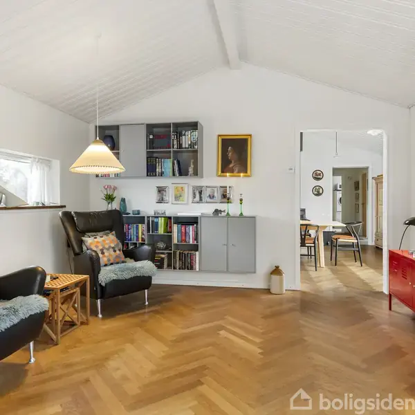 Kun få hundrede meter fra en af Danmarks bedste badestrande ligger denne arkitekttegnede villa – et hjem, hvor hver detalje er gennemtænkt, og hvor kvaliteten kan mærkes fra det øjeblik, man træder ind.Villaen blev opført i 2007 som arkitektens egen bolig, og intet er overladt til tilfældighederne. De rene linjer, de varme materialer og den harmoniske indretning smelter sammen til et hjem, der både er moderne og tidløst. Gennem årene er huset vedligeholdt med en energieffektiv luft-til-vand varm