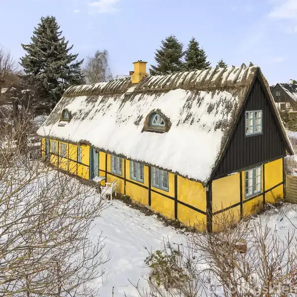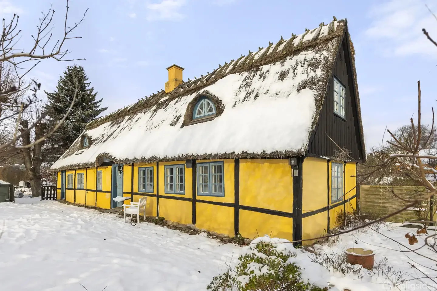 Her får du et hjem, der ikke bare fortæller historie med sit bindingsværk og stråtag – det mærkes i hver en krog. Indenfor møder du en bolig, hvor charmen er fuldt intakt, og stemningen er præcis, som man håber, den er i sådan et hus. Der er ikke så højt til loftet, så hvis du måler to meter, er det nok ikke huset for dig. Til gengæld er her pænt, velholdt og en planløsning som er rigtig godt udnyttet. Familien kan sagtens finde sig til rette her, og den nuværende ejer har inddraget en del af s