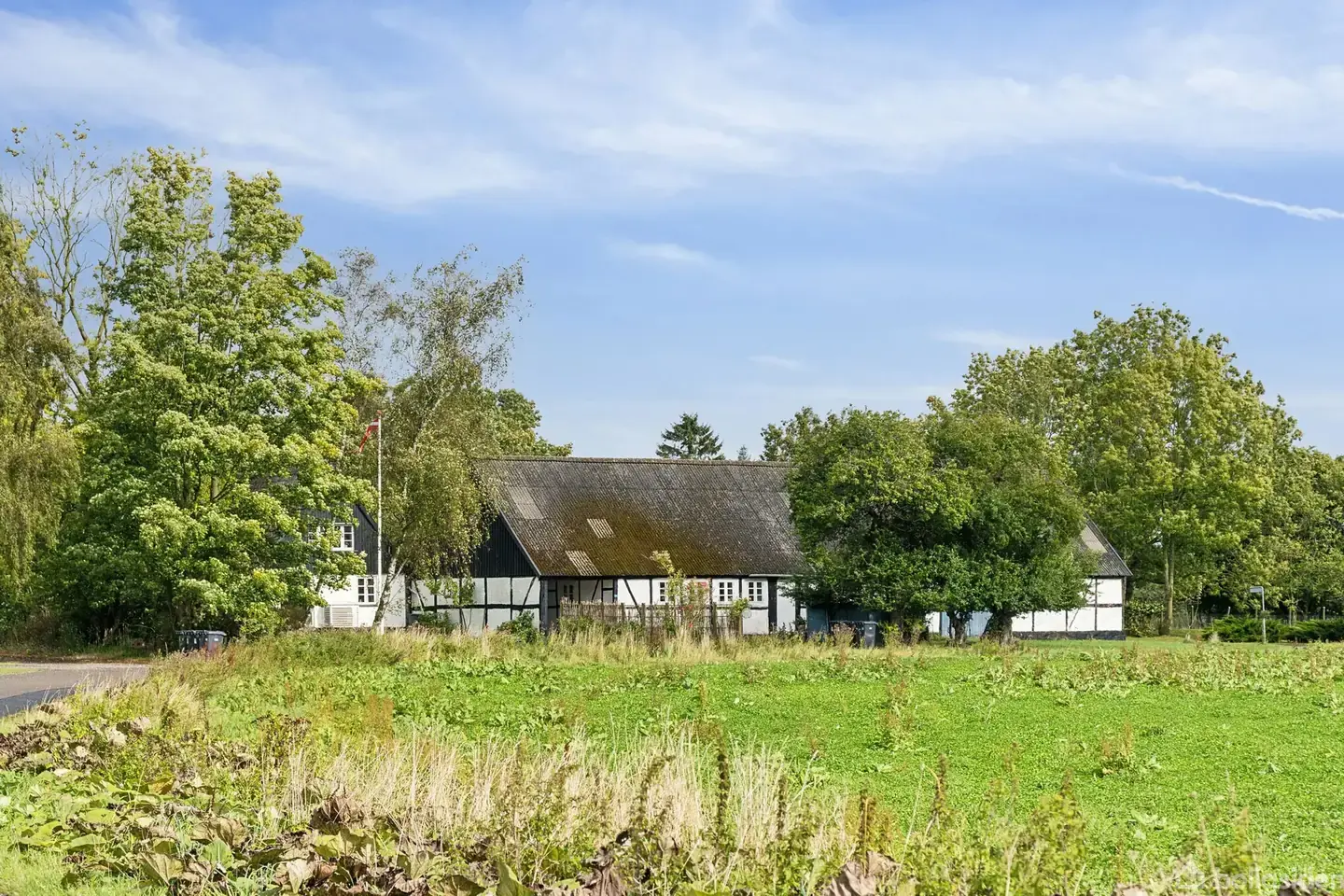 På Bydammen 18 i Lekkende ligger en ejendom, der ikke blot kan måles i mursten og kvadratmeterberegninger, men som fremstår som et levende mellemrum. Et sted, hvor man bor i ånd, ikke kun i arkitektur. Det er et sted, hvor dagene ikke bare forbruges, men formes og skabes gennem kunsten, præcis som det har været gjort de seneste mange, mange år. Opført i 1860 og restaureret med respekt for både historie og fremtid rejser denne trelængede ejendom sig med en ynde, der kunne have tilhørt Jeppe Aakjærs hedebonde eller en ung Karen Blixen, før hun fandt sig selv i Ngong Hills. Ejendommen er fordelt på et stuehus, staldlænge og værkstedsafsnit, og en grund på næsten 3.000 kvadratmeter som en slags personlig park med højt til himlen og langt til larmen. I stuehuset breder lyset sig over plankegulve, gennem sprossede vinduer og under de fritlagte bjælker. Rummene er ikke overdådige, men generøse. Det gælder især stuen, hvor udsigten over markerne ikke kun ses, men også føles som en sagte påmindelse om årstidernes skiftende farver og nuancer. Køkken og alrum flyder sammen i et hverdagslandskab, der bærer både morgenmad, manuskripter og filosofiske diskussioner i lige dele. Fem værelser og en hems giver plads til både nattesøvn og dagdrømme. På førstesalen kan man forestille sig en skrivestue, hvor mørket falder ind som i et Hammershøi-interiør, eller et atelier, hvor en ny skole af dansk kunst kunne begynde. Udenfor åbner en nyanlagt træterrasse fra 2022 mod gårdrummet, og haven fortsætter ud i landskabet med frugttræer, græs, gyngestativ og en stilhed, der kalder på fordybelse. I staldlængen venter et isoleret keramikværksted og et musikrum, der er som skabt til frie tanker og skabelse. Er det da et requiem for fortidens frembringelser? Ingenlunde. Stedet har løbende udviklet sig, og derfor finder man også blandt andet sådanne sager som nye trelagsvinduer og døre fra 2024 og en effektiv luft-til-luft-varmepumpe fra 2023. Og selvom det er oplagt at leve hele sit liv på denne plet på jorden, så er det heller ikke uvæsentligt, at skolebussen kører lige forbi, mens bilen på rekordtid når København ved hjælp af motorvejsnettet. Her er også skoven - en fredskov - med et rigt dyreliv, hvor man kan tage de mest henrivende spadsereture.