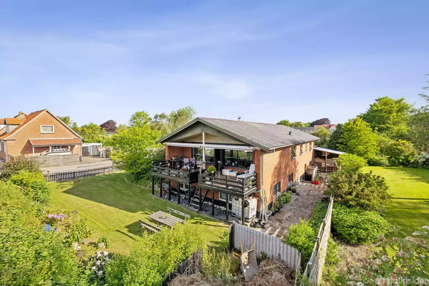 På en stille vej i Ranum ligger Bydamsvej 2 – en stor etplansvilla med et skønt udeliv. I kommer ikke til at mangle plads, for huset byder på 292 etagemeter inklusiv en meget brugbar kælder med gildesal. I bliver mødt af en bred indkørsel med garage, og herfra kan I hurtigt bevæge jer ud i den hyggelige have, der råder over et vedligeholdelsesnemt græsstykke og havebede. Her er plads til leg på plænen, mens den hævede, overdækkede terrasse indbyder til afslapning og grillaftener. Som en bonus ve