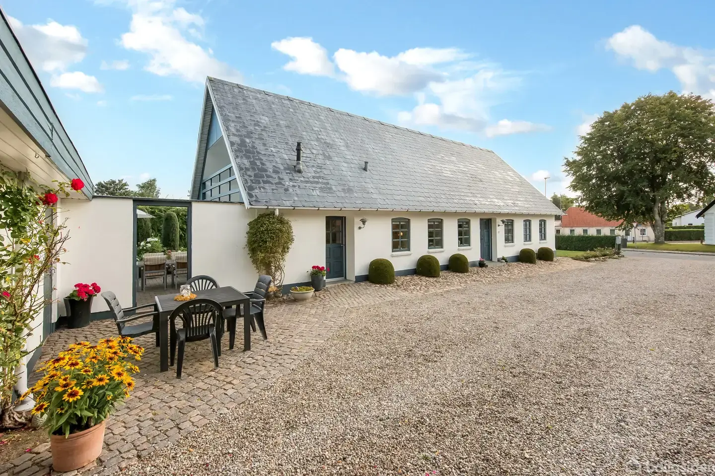 Bygaden 26 i Jegerup byder på en charmerende og veldisponeret ejendom, hvor klassisk landidyl møder moderne funktionalitet. Allerede ved ankomsten mærkes den hyggelige stemning – en flot, hvidpudset bygning med velplejede omgivelser, hvor gårdspladsen og blomstrende krukker skaber et varmt førstehåndsindtryk.Huset rummer en gennemtænkt planløsning, hvor stueplanet forener både praktiske og indbydende rammer for hverdagen. Fra entréen er der adgang til både det lyse køkken og de hyggelige opholds