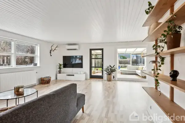 Velkommen til denne skønne 1-plans villa, der løbende er moderniseret og fremstår indflytningsklar med en række opdateringer. Blandt andet er der i 2015 installeret nye træ-/alu vinduer, og i 2019 blev køkkenet udskiftet til et flot, moderne køkken med hvidt inventar.Villaen har en super beliggenhed i rolige omgivelser, tæt på legeplads og boldbaner – perfekt til børnefamilier eller par, der værdsætter fredelige omgivelser.Indretningen byder på en hyggelig opholdsstue med udgang til en skøn udes