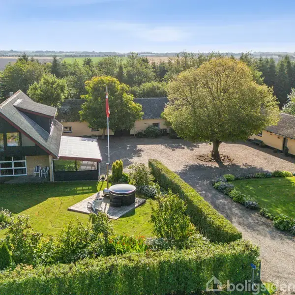Landejendom med charme, udsyn og plads til drømme – 4,3 ha jord lige uden for dørenDrømmer du om at bo på landet med masser af plads, luft omkring dig og mulighed for heste- eller andet dyrehold? Så byder denne velholdte landejendom på 4,3 ha jord på en sjældent attraktiv kombination af natur, bolig og anvendelige udbygninger. I området er der mange børnefamilier. Ejendommen er smukt omkranset af træer, hvilket giver en idyllisk og ugeneret beliggenhed, kun ca. 5 km fra Øster Hornum.Stueh