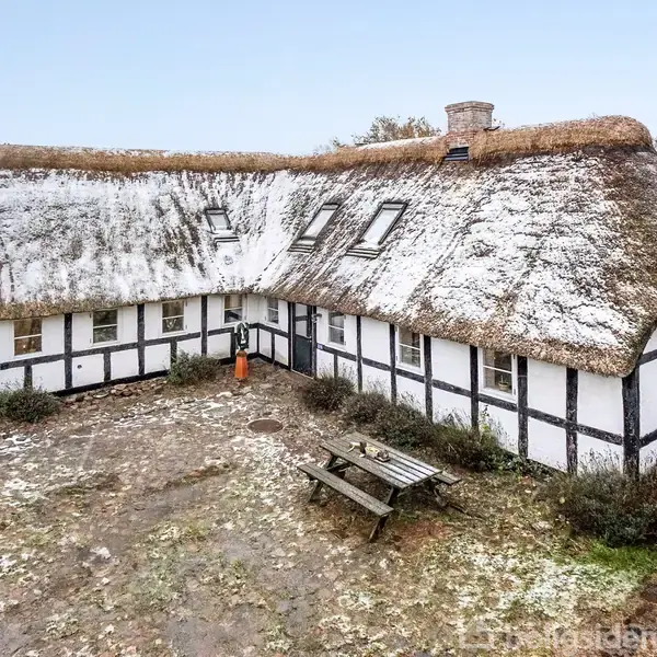 Åbent hus med tilmeldingskrav 29/1 - klik på billede - På Bystævnevej 37B får du ikke bare et hus - du bliver en del af et lille, uformelt bofællesskab i kanten af det hyggelige Bøjden. Ejendommen er udstykket som jordbrugsparcel i lokalplan 4.96, hvor der er lagt vægt på landlig bolig med god plads omkring sig og mulighed for mindre jordbrug. Her bor man fredeligt med ro, stilhed og et rigt fugleliv som faste følgesvende, og fra haven er der kig til havet. Den tilhørende jord har været drevet økologisk uden brug af sprøjtemidler i mere end 40 år, så rammerne er ideelle, hvis du drømmer om egen køkkenhave, frugttræer og måske lidt dyrehold - kort sagt muligheden for at være næsten selvforsynende. Huset er et charmerende stråtækt bindingsværk med hvidkalkede mure, som området også er planlagt til at fremstå med, så bebyggelsen opleves harmonisk og landsbypræget. Indenfor mødes du af et lyst og indbydende opholdsrum med spiseplads og stue i åben forbindelse samt et hyggeligt køkken, hvor sælger siden 2021 har lagt nyt gulv med gulvvarme og opsat nyt køkken. Hertil kommer flere værelser, entré og badeværelse, så planløsningen fungerer godt både til helårsbeboelse og som skønt fristed/flexbolig. Uderummet fuldender helheden: en dejlig terrasse, udhusrum på ca. 40 kvm. med værksted og den store jord omkring huset, der inviterer til udeliv året rundt. Samtidig deler man den gamle gårdramme og nærmiljøet med de øvrige parceller, hvilket giver en rar bofællesskabsstemning, hvor man både har sit eget og et nært naboskab lige uden for døren. Bøjden er et fantastisk naturområde med kyst, eng og åbne marker - og samtidig har du kun en kort køretur til Faaborg og Hornes skole-, indkøbs- og kulturliv. Her får du en sjældent udbudt kombination af stråtækt idyl, økologisk jord og et lille fællesskab omkring den gamle gård.