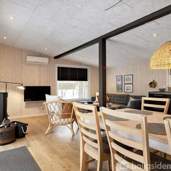 Åbent hus med tilmeldingskrav 2/2 - klik på billede - Totalrenoveret idyllisk sommerhus med alletiders beliggenhed i Bisnap Totalrenoveret drømmende og tidløst sommerhus ved vandet i Bisnap – beliggende på en uforstyrret idyllisk grund med under 200 meter direkte ned til en børnevenlig badestrand. Et moderne “getaway” sommerhus, der kalder på et koldt glas hvidvin på terrassen, grillmad og ro til bare at nyde hinanden i havens dejlige solkroge. Med eventyrlige træer, der omfavner husets grund, får man lyst til at overgive sig til hyggen, som brændeovnen og omgivelserne unægteligt skaber. Sommerhuset er lyst og indbydende; med en dobbeltdør, der åbner op til sommeraftener med venner og familie, og et stort køkkenalrum i lyst troldtekt samt ludbehandlet træværk i hele sommerhuset. Køkkenet er moderne og udført i mørke materialer, som skaber en smuk kontrast til de lyse omgivelser. Kvadratmeterne fordeler sig videre på to rummelige værelser og et anneks samt et badeværelse med mørkt armatur, der giver en fornemmelse af skandinavisk velvære. Annekset er opført i 12 m² i flotte materialer og boligstandard, som matcher sommerhuset i både udtryk og materialevalg – ideelt som gæsteanneks, hjemmearbejdsplads eller ekstra opholdsrum. Lyset strømmer ind gennem den magelige fordelingsgang med store glaspartier og energivenlige vinduer. Alt i alt et sommerhus i gennemført kvalitet og materialevalg hele vejen, som omfavner både par og børnefamiliers ønske om uforglemmelige sommerminder i nordisk arkitektur.