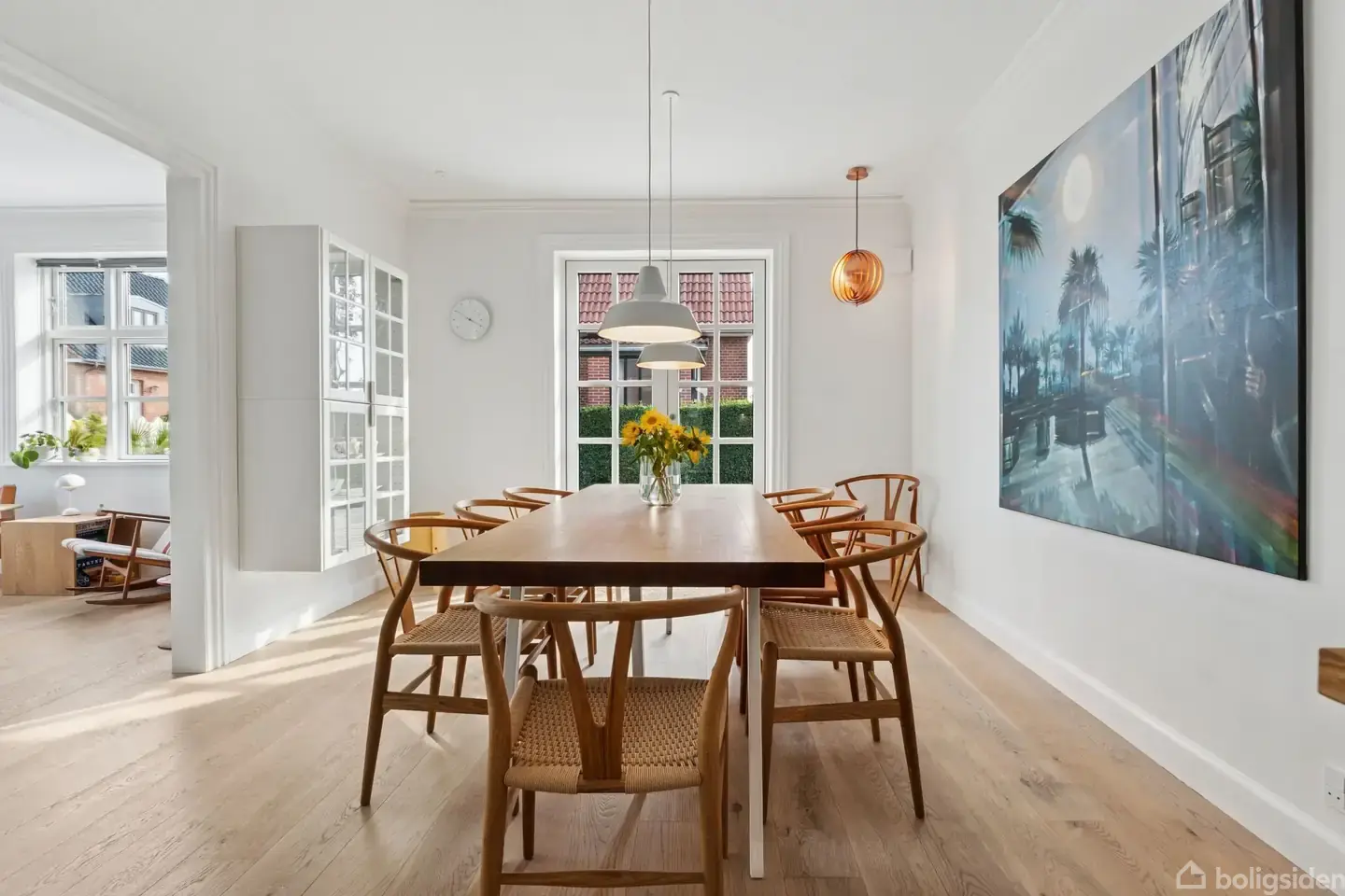Velkommen til Carit Etlars Vej 13 – som er et hus med mange kvaliteter, der venter de nye ejere beliggende midt i Digterkvarteret. Bliver det jer, kan I se frem til en villa, der ikke bare er moderniseret med fokus på flot finish og lækre detaljer i form af 100 år gammel stuk renoveret samt opsat roset og almue kanter. Med i alt 136 m2 byder boligen også på god plads i et attraktivt kvarter i kort afstand til alt. Det er en total istandsættelse, der er baggrund for villaens gennemførte gode stand og det ses blandt andet med gulvvarme i det meste af stueetagen. Endvidere kan det fremhæves at der er kommet nyt tag i 2020, køkken i 2024, badeværelse i 2021, bryggers i 2022, nye gulve i alle rum, nyt el i hele huset samt ny eltavle, hulmursisolering og meget meget mere. Indendørs mødes du af en stor entré, der fører videre til husets centrale opholdsrum – det lyse og åbne alrum i direkte forbindelse med både stue og køkken. Stuen har en hyggelig atmosfære med skøn lysindfald fra de store vinduespartier og udgang til en af husets to solrige terrasser. Køkkenet er moderniseret og veludstyret, og det praktiske bryggers giver ekstra opbevarings- og vaskefaciliteter. Der er desuden et moderne badeværelse i lyse materialer, strategisk placeret i boligens hjerte. I stueplan finder du to værelser – ideelle til børn, gæster eller kontor – samt et praktisk skur med adgang udefra. På første sal er der endnu et stort værelse, et disponibelt rum og et repos, der kan anvendes fleksibelt, eksempelvis som kontor eller hobbyområde. Udeområdet er ændret til stor lækker træterrasse med plads til hele familien og der er nyanlagt fliser, nye skæver samt ny sået græsplæne. Skynd dig at bestille en fremvisning på 88442070 hos din lokale Realmæglerne Boligbutikken Fredericia.