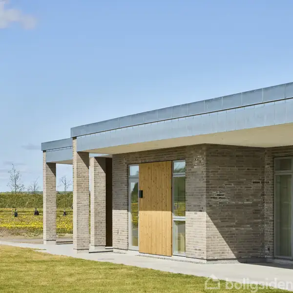 Velkommen til et arkitektonisk gennemtænkt hus på 187 m², hvor funktionalitet, æstetik og kvalitetsmaterialer går hånd i hånd. Huset er opført i en smuk kombination af sten og træ, hvilket skaber et stilfuldt og tidløst ydre. Den ensidige taghældning forstærker det arkitektoniske udtryk, og det store udhæng skaber en indbydende terrasse, hvor du kan nyde de lange sommeraftener. Den store carport giver praktisk parkering og er integreret med et redskabsrum, så der er plads til både opbevaring o