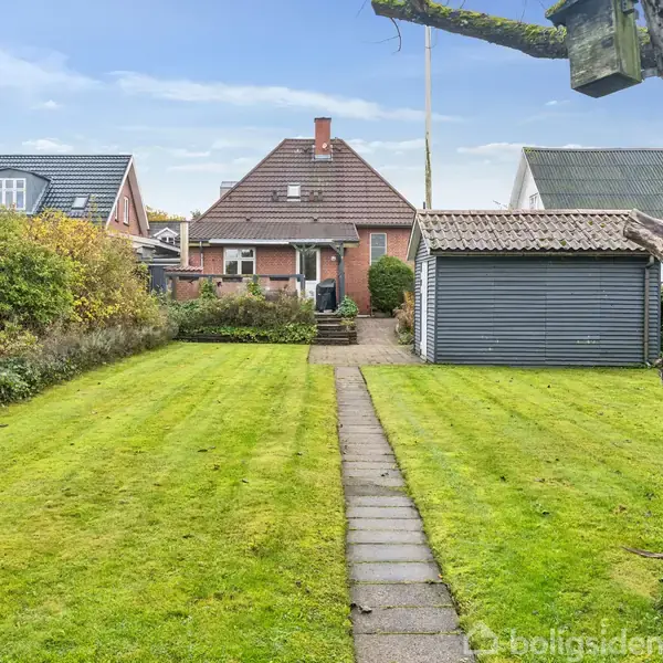 På en rolig og blind villavej, hvor Bækkenstien slynger sig tæt forbi, kan I netop nu finde hjem i rammerne af en charmerende rødstensvilla fra 1947, som forener klassisk håndværk med moderne komfort. Huset fremstår særdeles velholdt inde som ude med nye vinduer og en venlig, indbydende atmosfære, hvor lyset strømmer frit gennem rummene. Stueplan byder på en rummelig stue, et nyt køkken med god plads til hverdagens måltider samt et badeværelse med brus og kar. På førstesalen finder I to gode væ