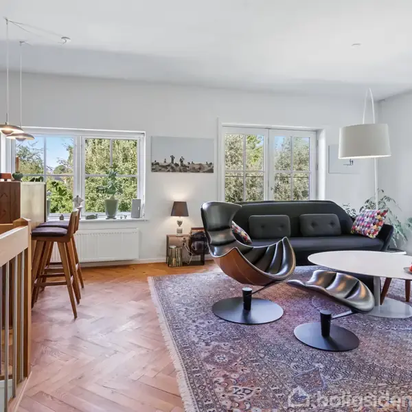 Gennemført rækkehus helt ud til Odense ÅDet bliver nemt at finde sig tilrette i dette stilrene rækkehus, der er placeret helt fantastisk i Odense omgivet af grønne træer, direkte ved åen og tæt på bymidtens herligheder. Her overtager I nøglerne til en bolig på 177 m2 fordelt over tre etager, som munder ud i en skøn tagterrasse med en fantastisk udsigt til omgivelserne. Dertil bør I bemærke den gode planløsning og de store vinduespartier, der lader dagslyset strømme ind og giver udsyn til de omkr