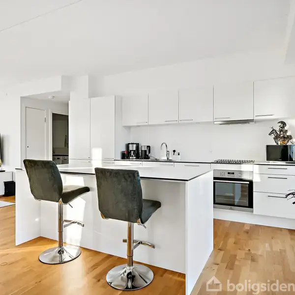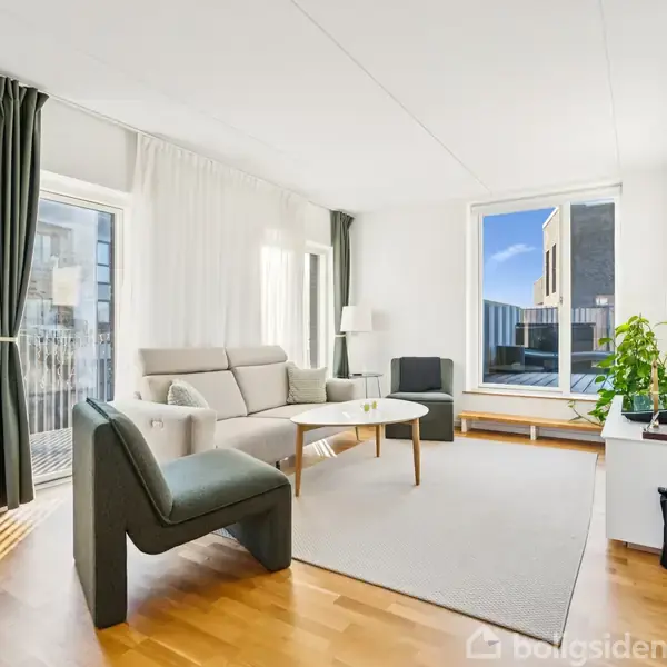 Velkommen til denne perle i Nærheden – hvor jeres hverdag begynder og ender med udsigt, lys og luksus.Højt hævet over byens tagrygge, i hjertet af det populære og familievenlige kvarter Nærheden, finder I denne sjældne penthouselejlighed, der emmer af livskvalitet og stil. En lejlighed, hvor elevatoren tager jer op til 3. sal og jeres private oase – øverst oppe, med en udsigt der ganske enkelt skal opleves.Lejligheden byder på et imponerende stort og åbent køkken-alrum, hvor hjemmelivet får plad