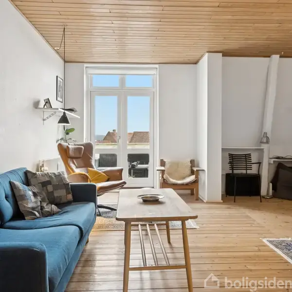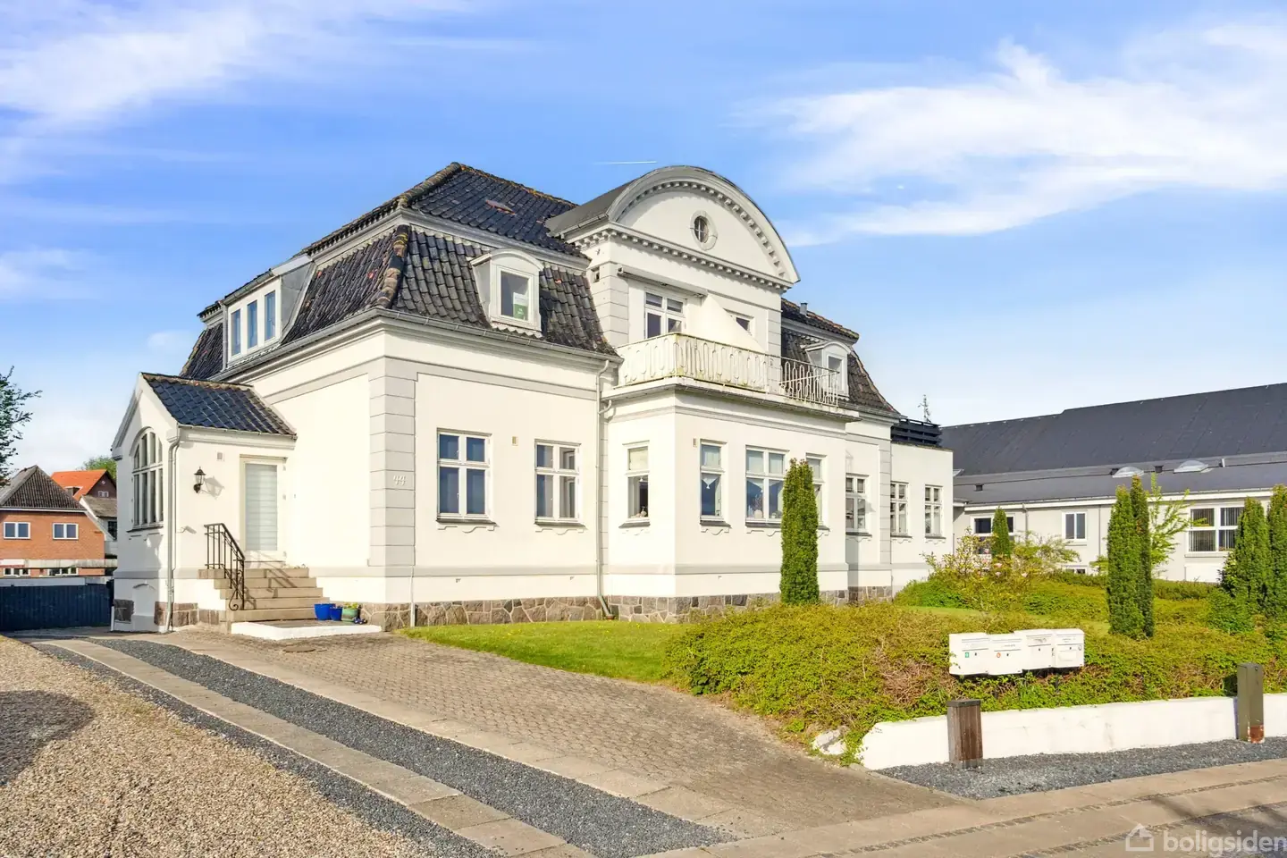 Lækker lejlighed i smuk patriciervilla.Højt placeret i terrænet og ganske centralt i Kolding står denne smukke patriciervilla. Lejligheden er at finde på førstesalen, og foruden den imponerende udsigt over hele byen og den gennemførte, klassiske æstetik, kan I se frem til en skøn og velindrettet bolig. I får blandt andet en stor, lys stue, to værelser og en altan.  Lejligheden centrerer sig omkring den anseelige stue. Den kendetegnes af et behageligt lysindfald, og takket være dens fornuftige st