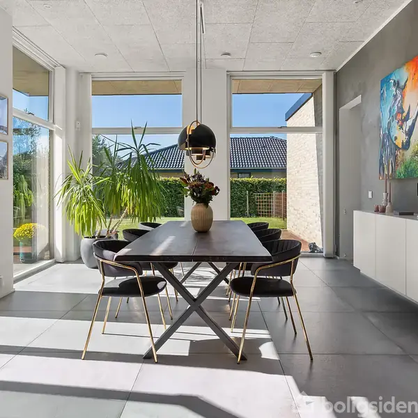 Velkommen til en eksklusiv villa, hvor moderne arkitektur og klassiske detaljer smelter sammen til et hjem i absolut særklasse. Ejendommen er placeret på en fredelig villavej i et af Hedensteds mest attraktive kvarterer, omgivet af grønne omgivelser og smukke nabohuse. Allerede ved ankomsten imponerer de stilrene murstensfacader, det arkitektoniske flade tag og den indbydende have, som rammer huset ind med en hyggelig og elegant atmosfære.Indenfor møder du en gennemtænkt planløsning, der forener
