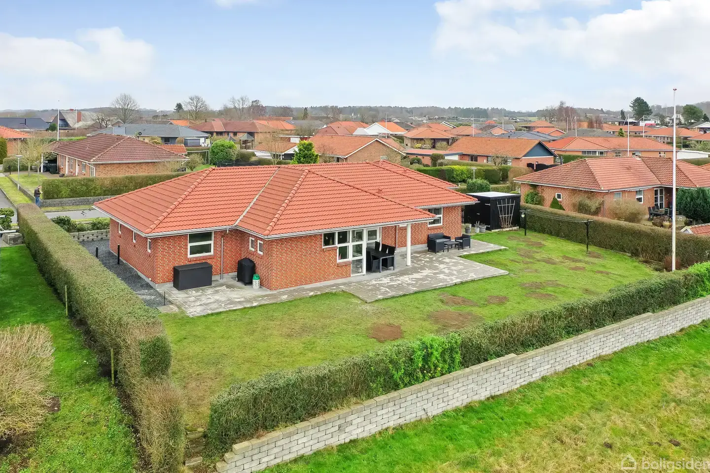 Dalgårdsparken 45 byder på en indflytningsklar og velholdt étplansvilla på 164 m² med dertil 39 m² garage og 8 m² udhus, opført i 1998 og beliggende på en dejlig, solrig grund på 780 m². Her får du en bolig, hvor planløsningen er gennemtænkt, materialerne er tidløse, og renoveringerne er udført med omtanke.Allerede i entré/bryggerset mærker du den gennemtænkte planløsning, med masser af opbevaringsplads i indbyggede skabe samt vaskesøjle. Herfra føres du videre til boligens naturlige samlingspun