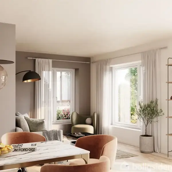 Åbent hus med tilmeldingskrav 14/12 - klik på billede - Velkommen til Landskabsbyen – en ny og visionær bydel i Egedal, hvor arkitektur, natur og fællesskab går hånd i hånd. Området er omgivet af natur og med fællesskabet i centrum. Her udbydes moderne, vedligeholdelsesvenlige seniorboliger til dig over 50 år uden hjemmeboende børn. Tænk dig et sted, hvor hverdagen bliver lettere og livet mere givende og hvor du bliver en del af et levende, engageret og trygt seniorbofællesskab. Boligerne er skræddersyet med funktionalitet og tilgængelighed tænkt ind fra start. Seniorboligerne er bygget op om seniorbofællesskabets ”hjerte” – nemlig et stort, grønt gårdrum med indbydende fælleshus med bl.a. gæsteværelse, fælleskøkken, opholdsrum m.v. Her kan beboerne samles til hverdagsliv, fællesspisning og fejringer. Gårdrummet byder desuden på et orangeri, et mødested hvor kaffen, et spil kort eller en god bog kan nydes. Boligen er i 1 plan og det indbydende køkken/alrum fungerer som hjemmets naturlige samlingspunkt og ligger i åben forbindelse med stuen. Køkkenet er fra Svane og udstyret med Quooker, hvilket sikrer både funktionalitet og æstetik i hverdagen. Den gode planløsning byder desuden på entre, 2 værelser, gæstetoilet samt stilrent badeværelse – med vaskesøjle samt med elementer fra Svane. Boligen har egen terrasse og 1 nummeret parkeringsplads pr. bolig på seniorboligernes fælles p-areal. Landskabsbyen er mere end blot et boligområde – det er en hel bydel i udvikling, hvor fællesskab og bæredygtighed er nøgleord. Området er planlagt med rekreative fællesområder, naturlegeplads, boldbaner, orangerier og fælles aktivitetshus. Alt er skabt med tanke på et aktivt og socialt hverdagsliv, hvor man både kan trække sig tilbage og være en del af et lokalt fællesskab. Projektet er DGNB Guld-præcertificeret, hvilket sikrer en høj standard for miljø, indeklima og materialevalg. Her får du en bolig, der kombinerer moderne komfort med grønne omgivelser og nem adgang til byliv og god infrastruktur med bl.a. kun ca. 500 meter til Egedal station, café, indkøb m.v. Et hjem, der er klar til fremtiden – og klar til at danne rammen om dit næste kapitel.
