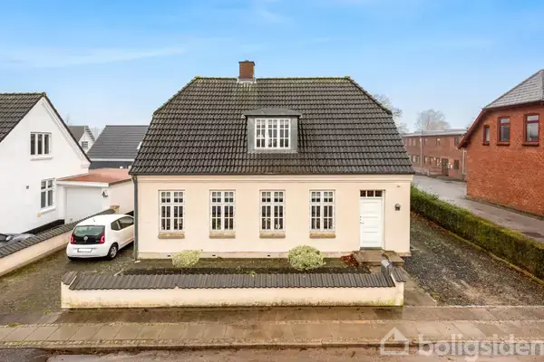 Charmerende hus midt i Vojens! På Danmarksgade i Vojens og med kort afstand til bl.a. indkøb, skole, fritidsaktiviteter m.m. sælges dette skønne hus der ligger på en 690 m2 grund med hyggelig have. Her får du et hus med flot byggestil. Huset er opført 1914 / 2004 og har et boligareal på 128 m2. Lille kælder 6 m2. Udhus / carport på i alt 61 m2. Flot orangeri i haven. Huset opvarmes med fjernvarme og brændeovn. Indrettet med entre med trappe til 1. sal, skøn opholdsstue med brændeovn, dejlig spis