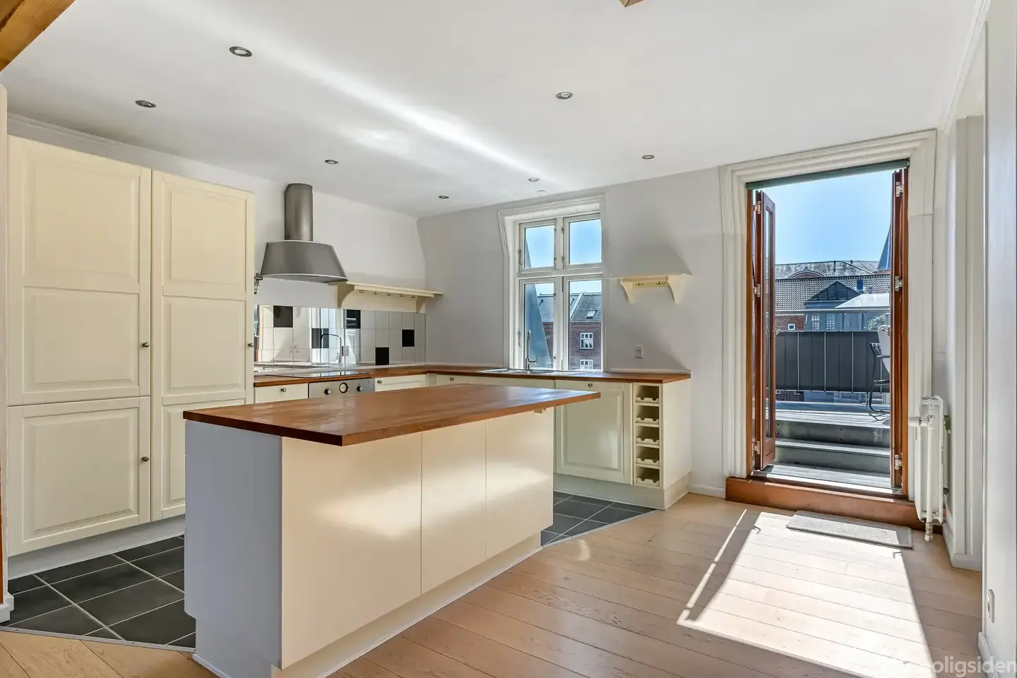 Velkommen til denne fantastiske penthouse lejlighed på kun 2. sal undgår du overbo og får dig den mest fantastiske solvendte altan midt inde i byen men i stille og roligt område. Ejendommen er blevet omfuget og vinduerne ud imod gaden er alle blevet skiftet. Lejligheden rummer af sjæl og charme og minder om en rigtig new yorker lejlighed hvor leverummet virkelig er sat i fokus. Fra samtale køkkenet har du udgang til den store solvendte terrasse, som giver en ekstra stue sommeren over. God entre